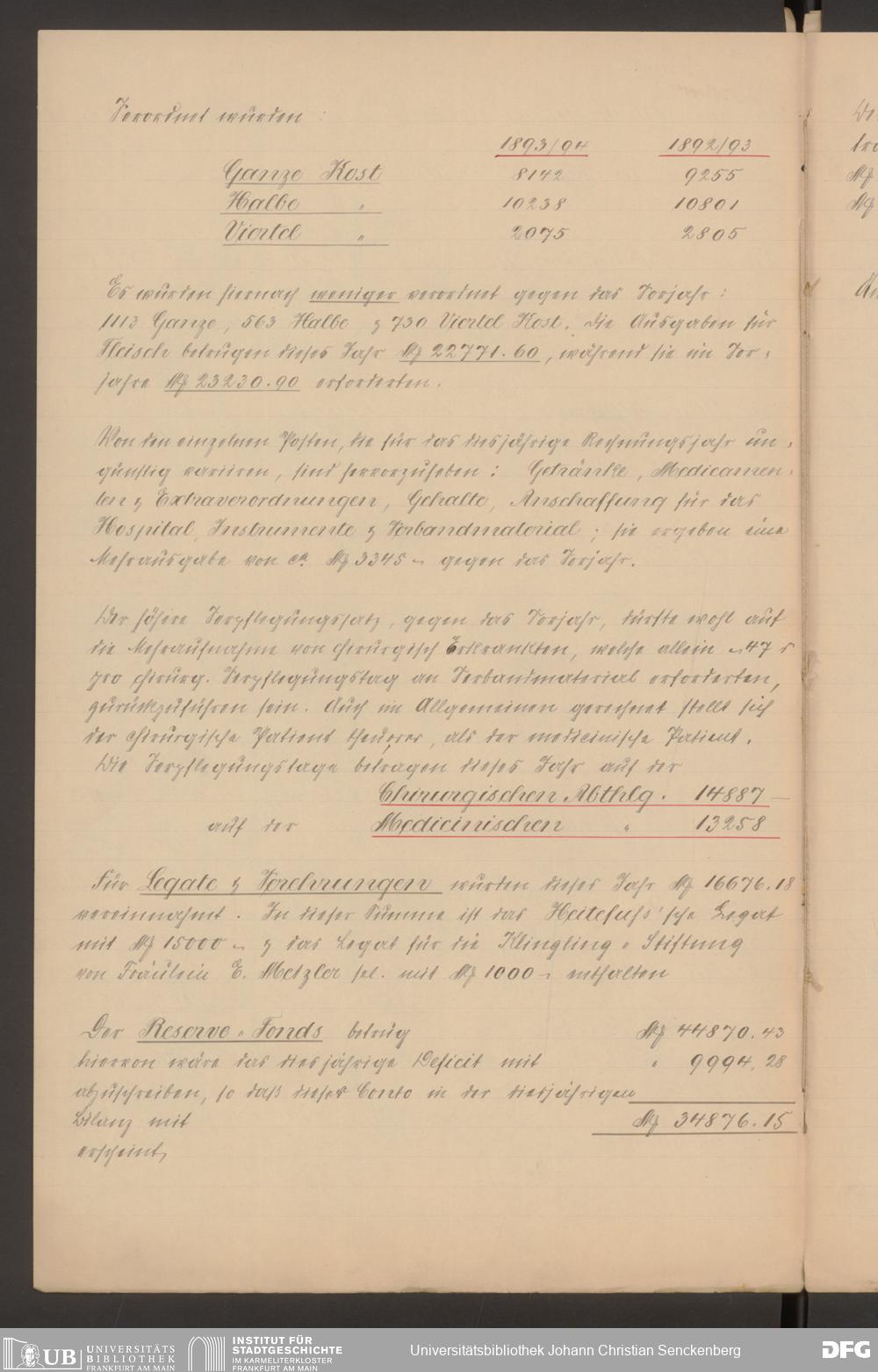 V48 Dr. Senckenbergische Stiftung, 570 - Etats und Bilanzen