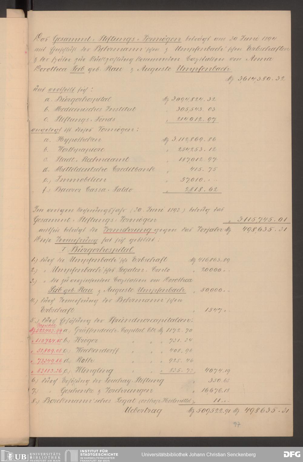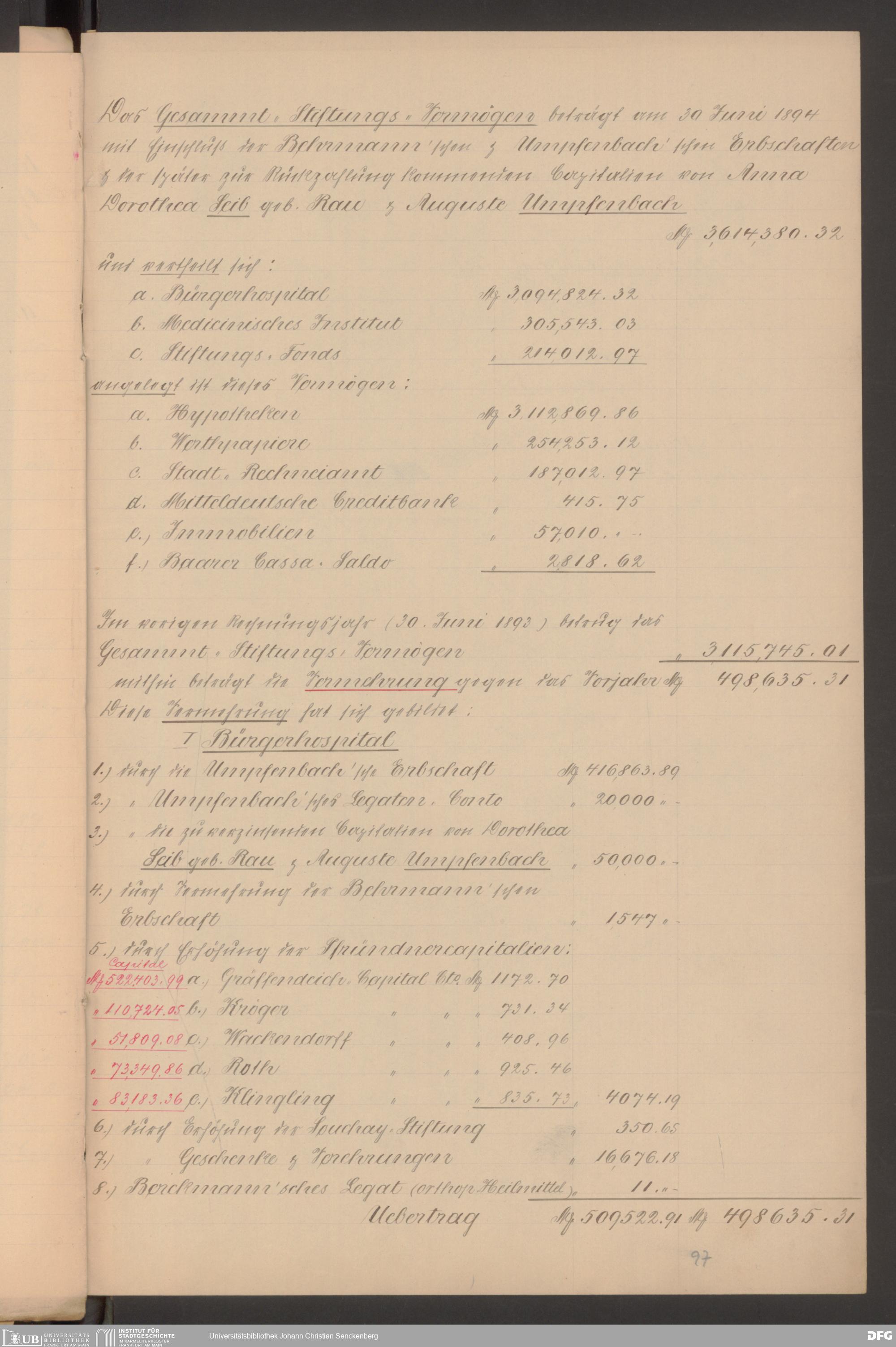 V48 Dr. Senckenbergische Stiftung, 570 - Etats und Bilanzen