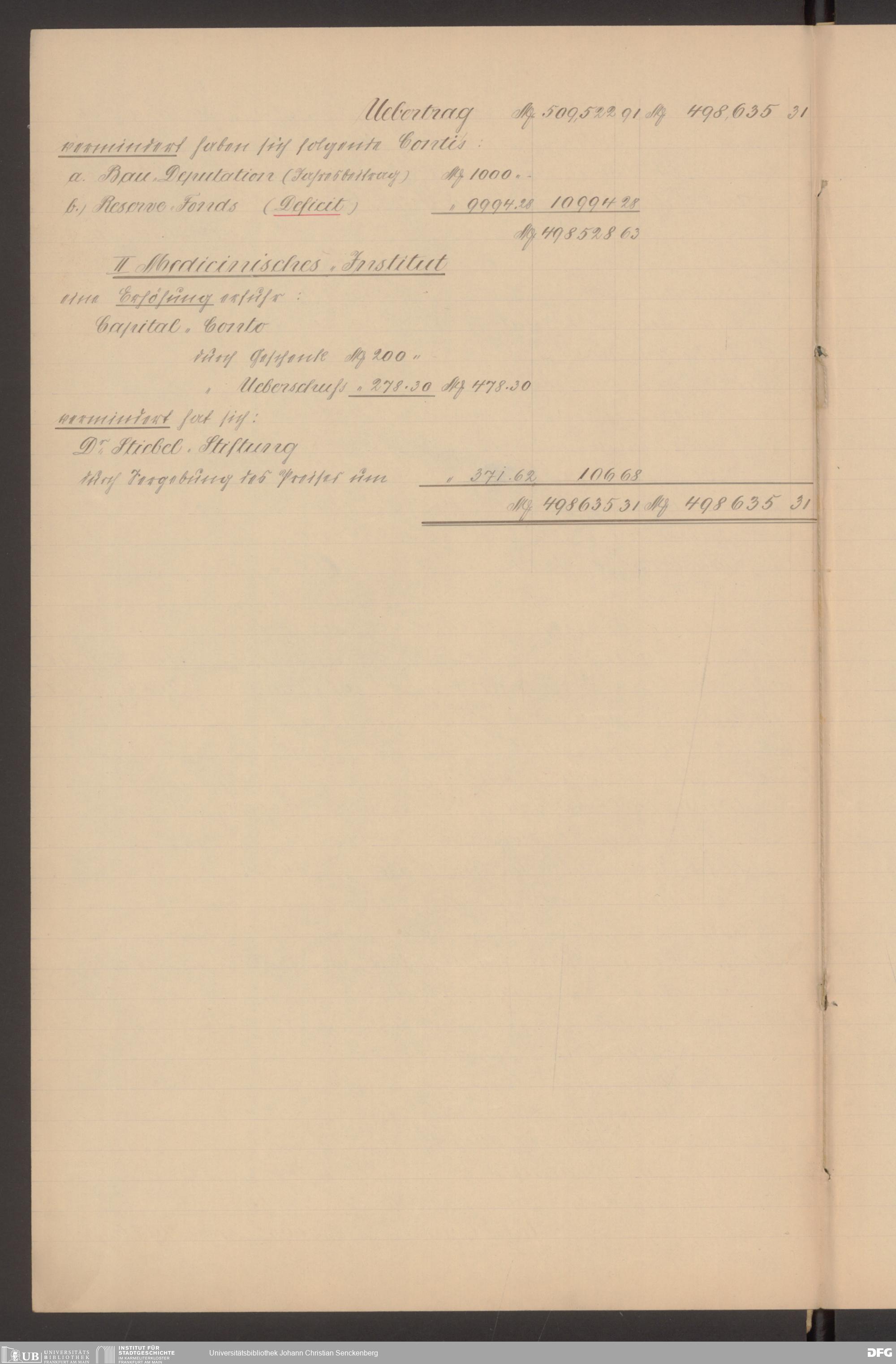 V48 Dr. Senckenbergische Stiftung, 570 - Etats und Bilanzen