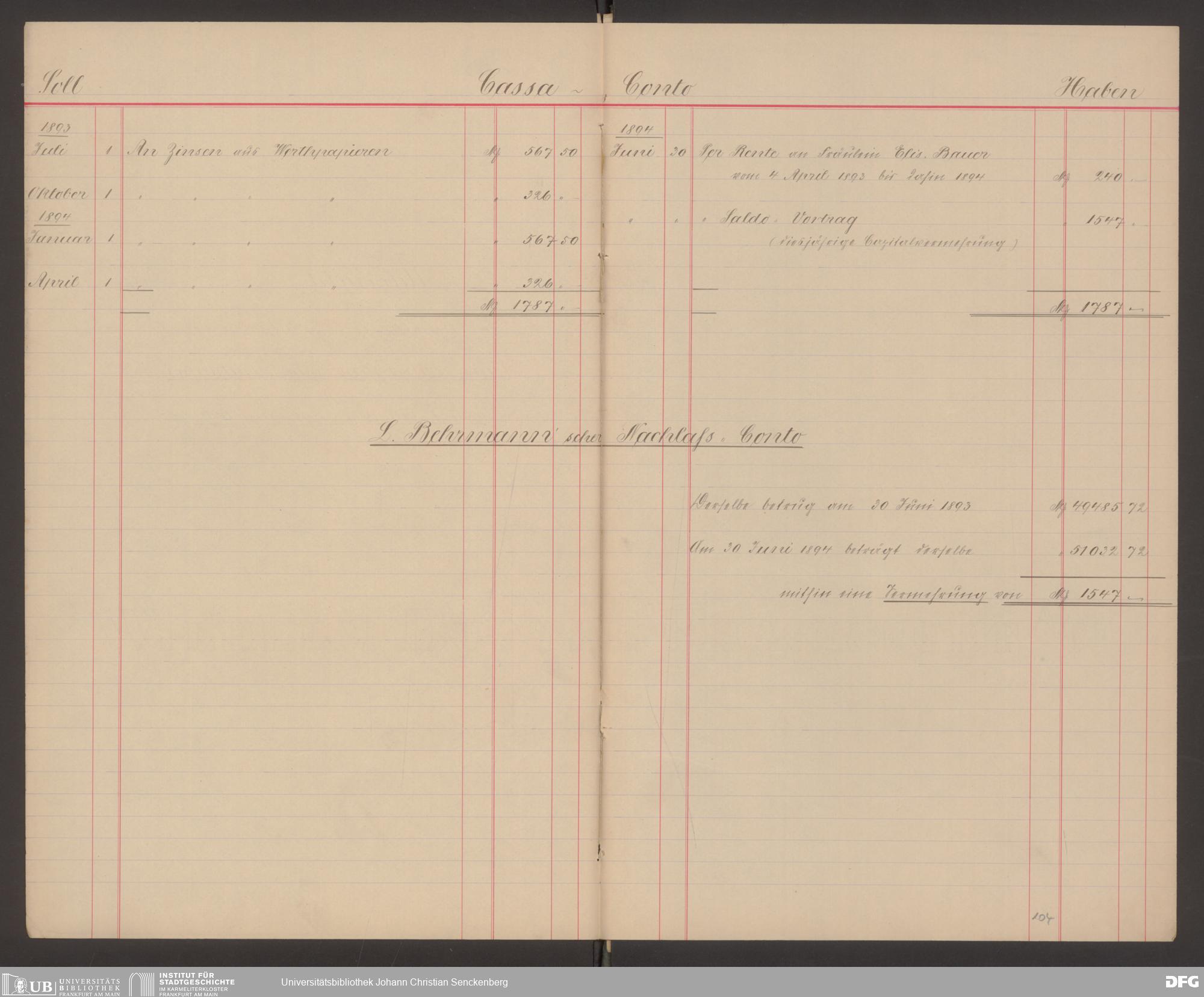 V48 Dr. Senckenbergische Stiftung, 570 - Etats und Bilanzen