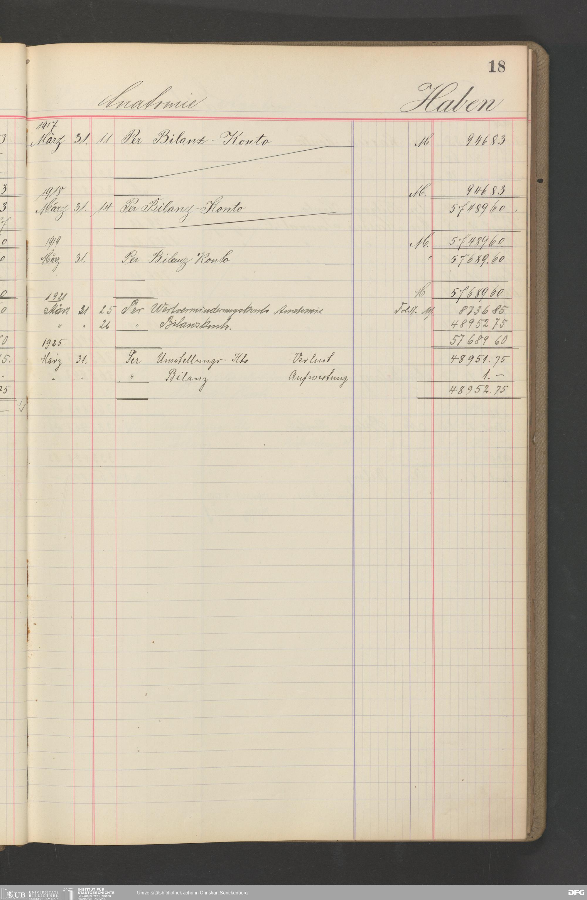 V48 Dr. Senckenbergische Stiftung, B35 - Hauptbuch für Botanisches Institut, Bibliothek und Anatomie
