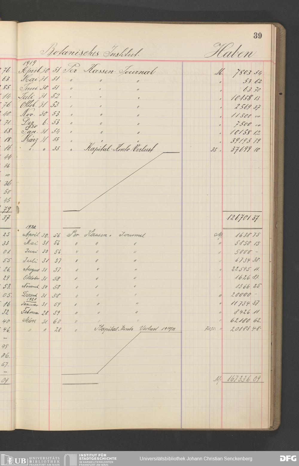 V48 Dr. Senckenbergische Stiftung, B35 - Hauptbuch für Botanisches Institut, Bibliothek und Anatomie
