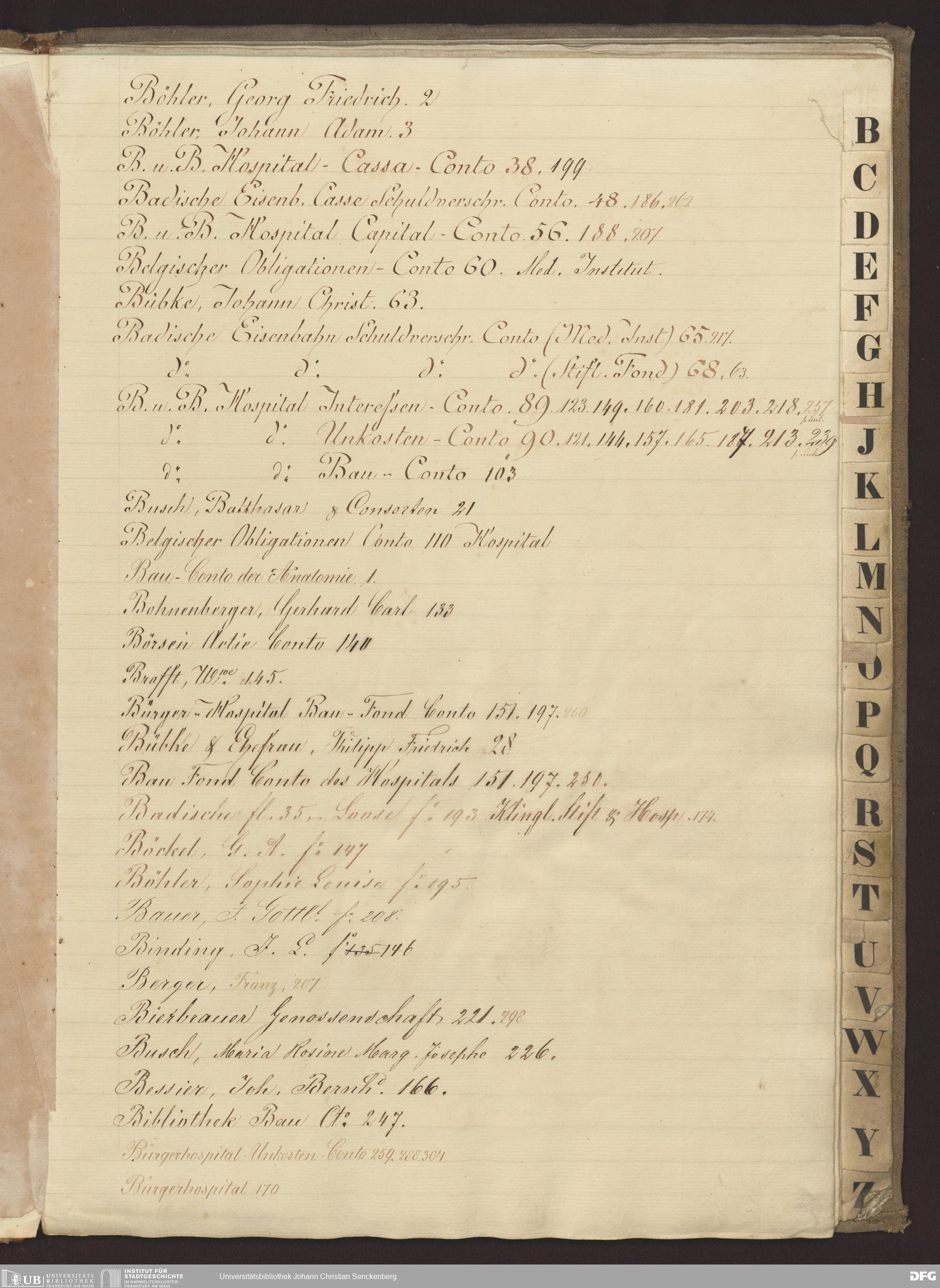 V48 Dr. Senckenbergische Stiftung, B38 - Register zum Hauptbuch Nr. 3