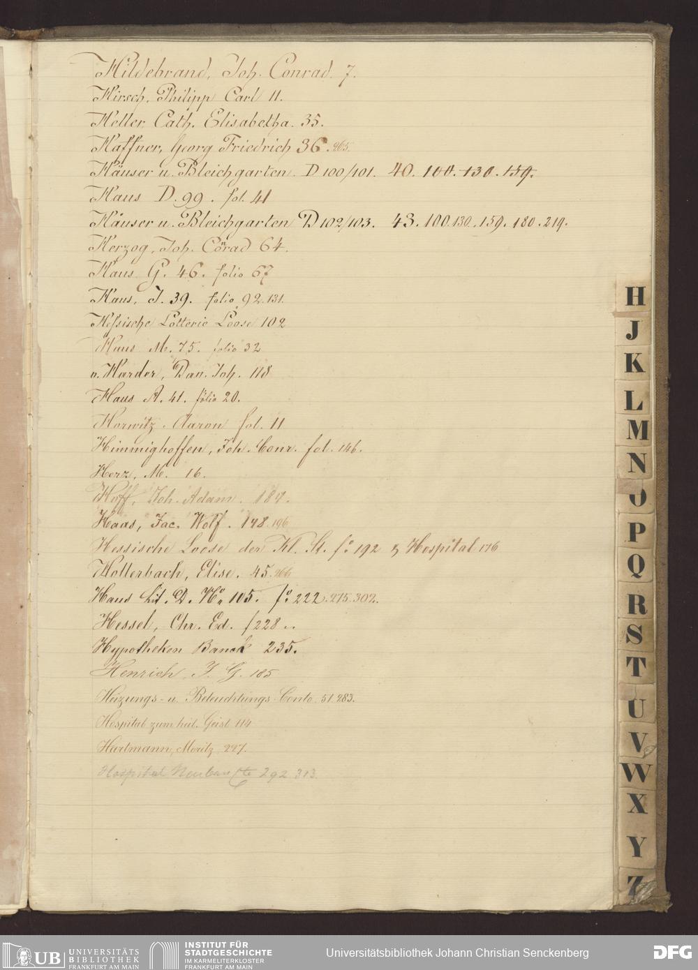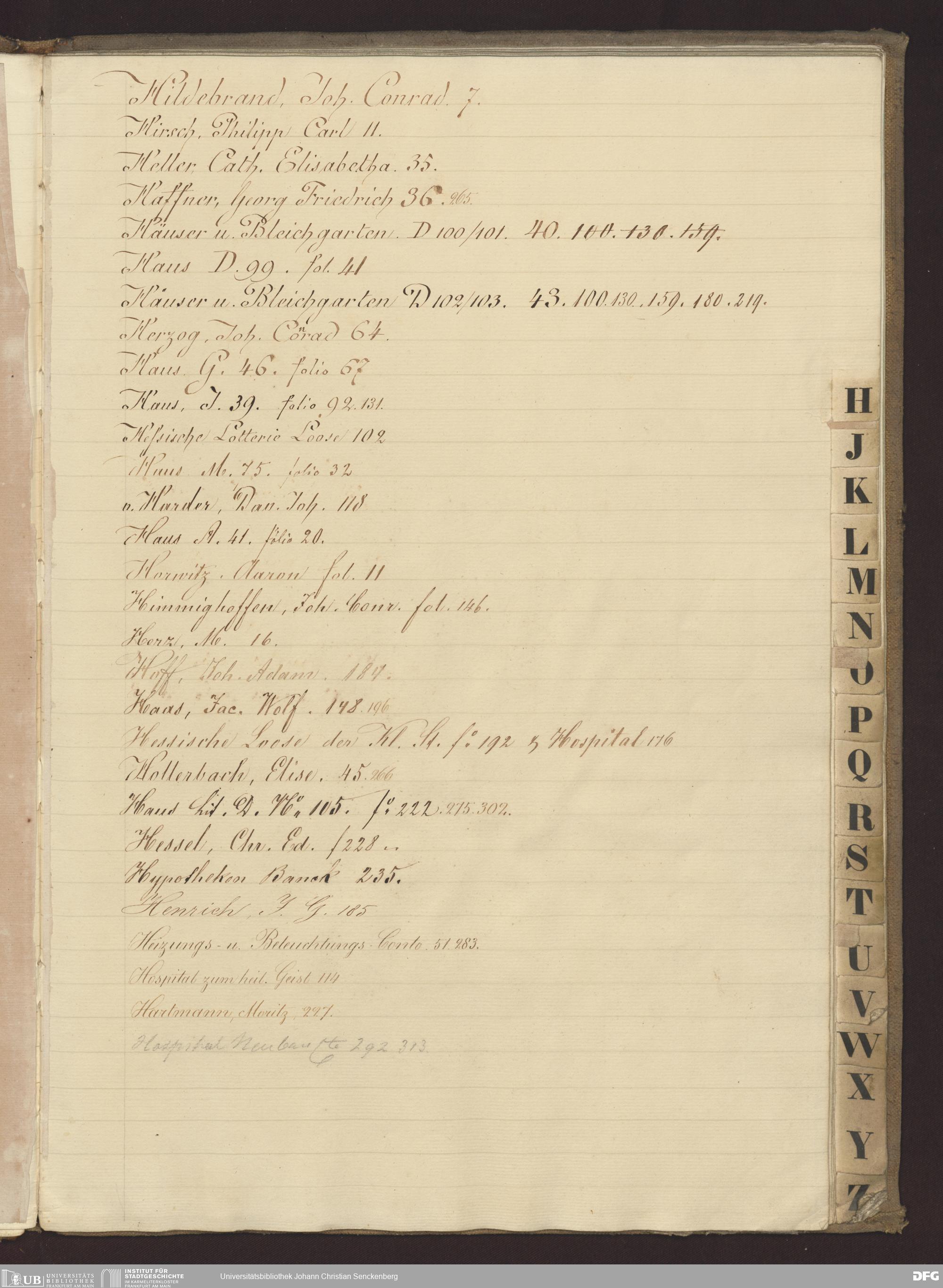 V48 Dr. Senckenbergische Stiftung, B38 - Register zum Hauptbuch Nr. 3