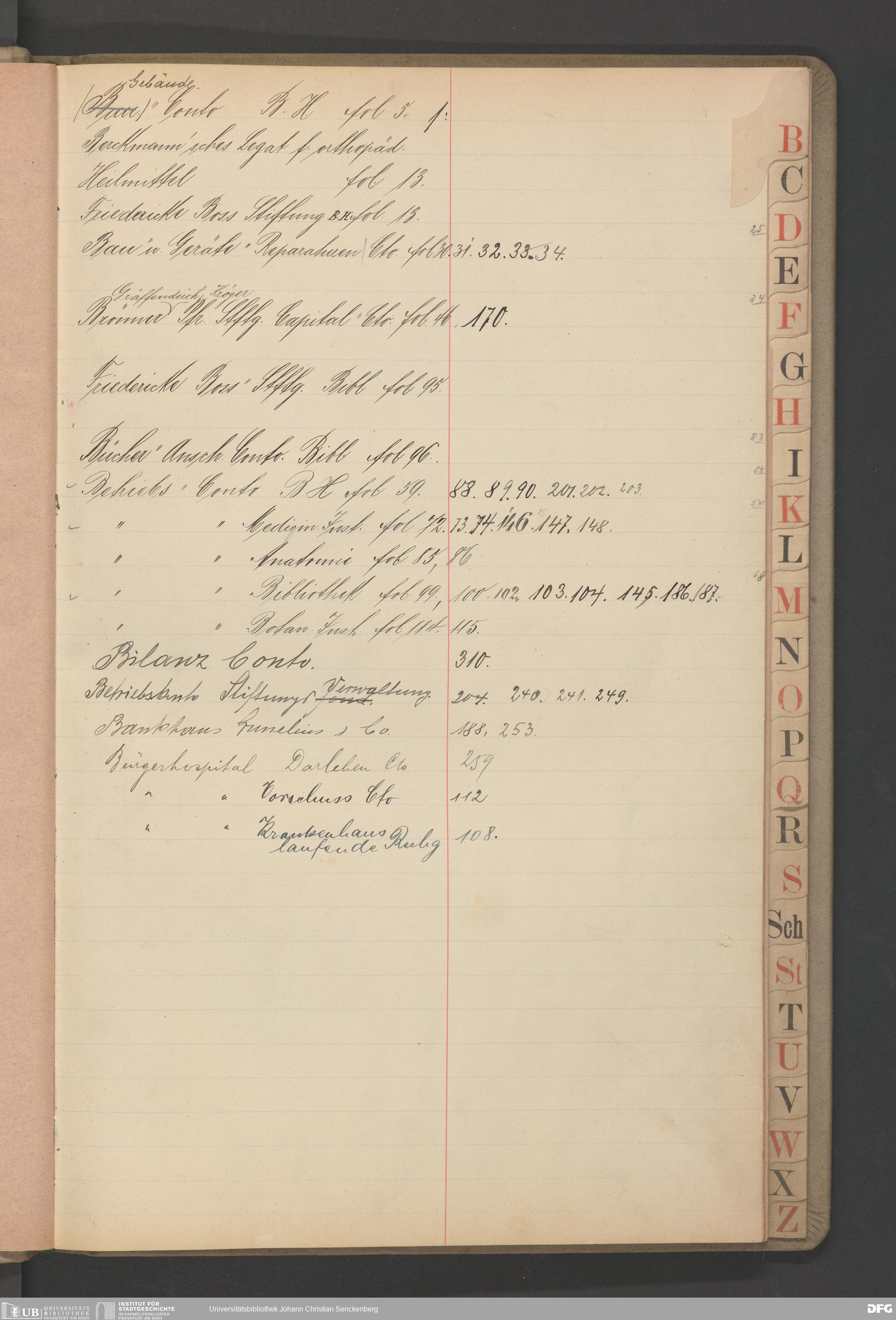 V48 Dr. Senckenbergische Stiftung, B40 - Register zum Hauptbuch Nr. 6