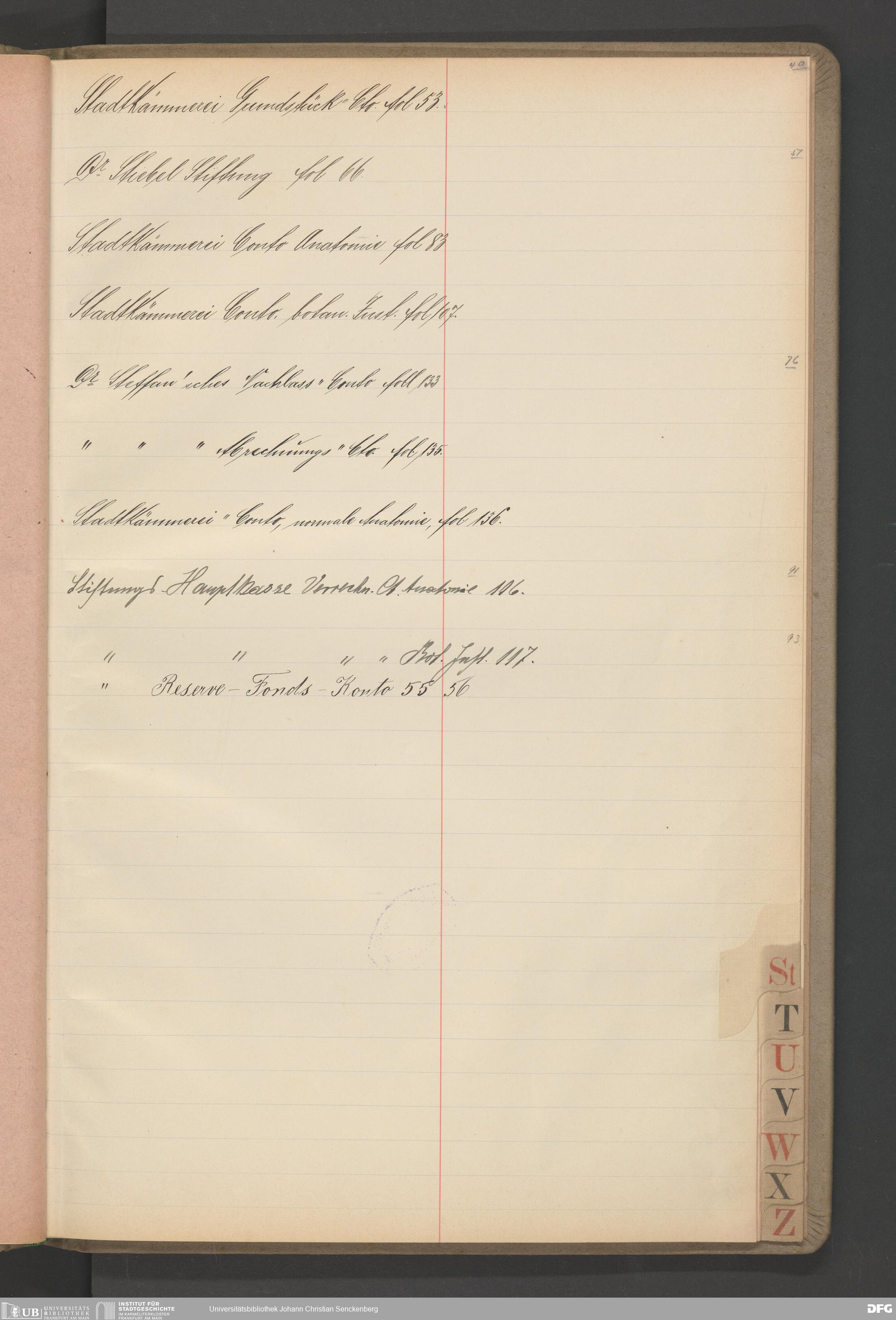 V48 Dr. Senckenbergische Stiftung, B40 - Register zum Hauptbuch Nr. 6