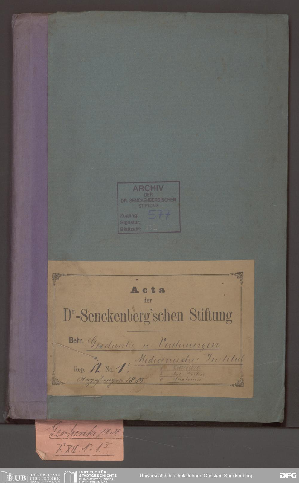V48 Dr. Senckenbergische Stiftung, 577 - Schenkungen und Erbschaften