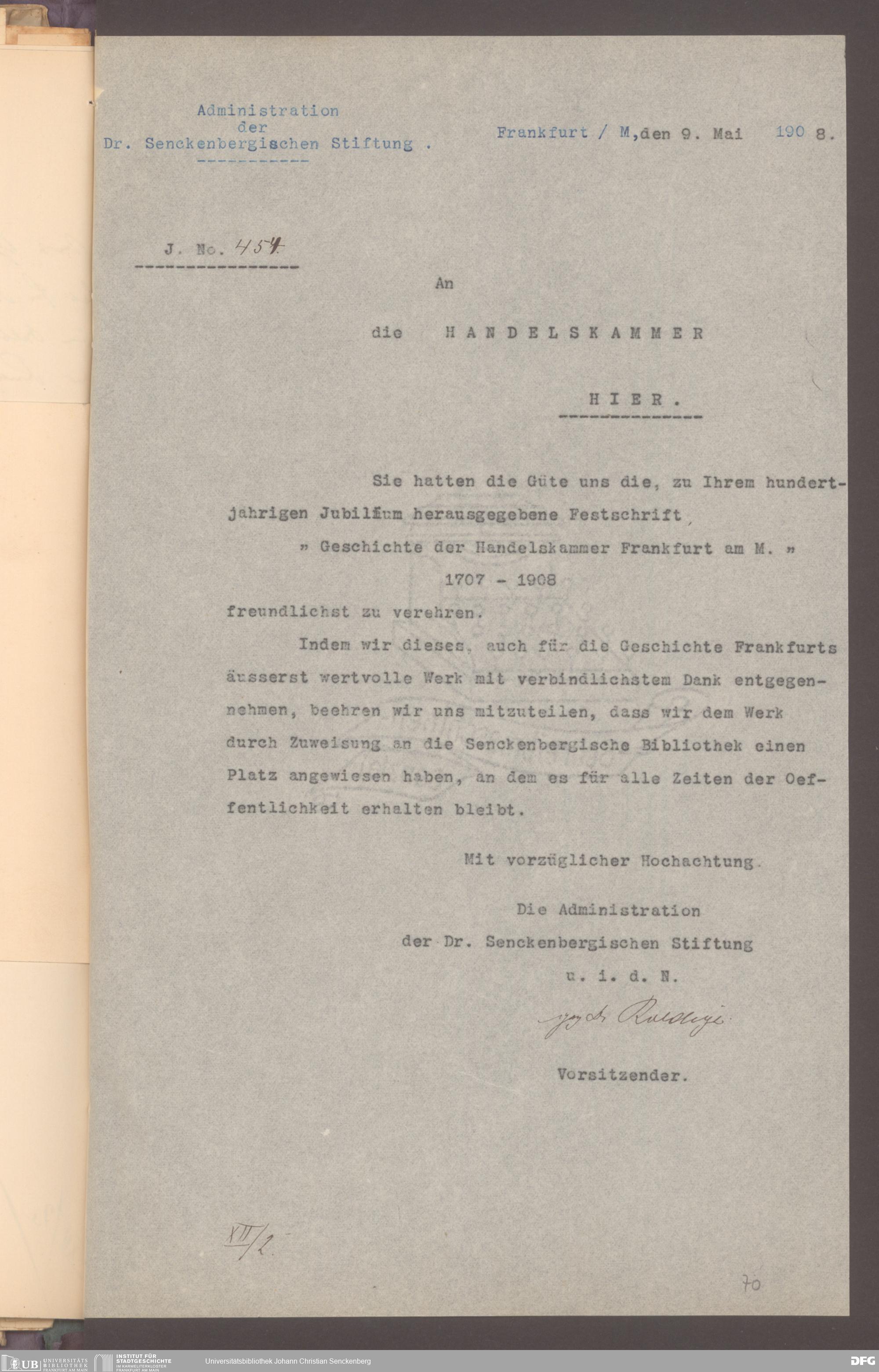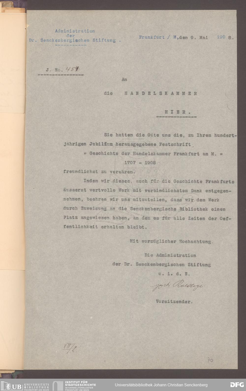 V48 Dr. Senckenbergische Stiftung, 577 - Schenkungen und Erbschaften