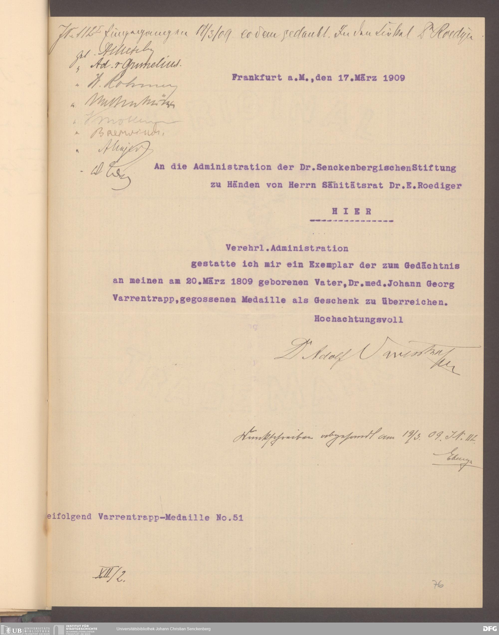 V48 Dr. Senckenbergische Stiftung, 577 - Schenkungen und Erbschaften