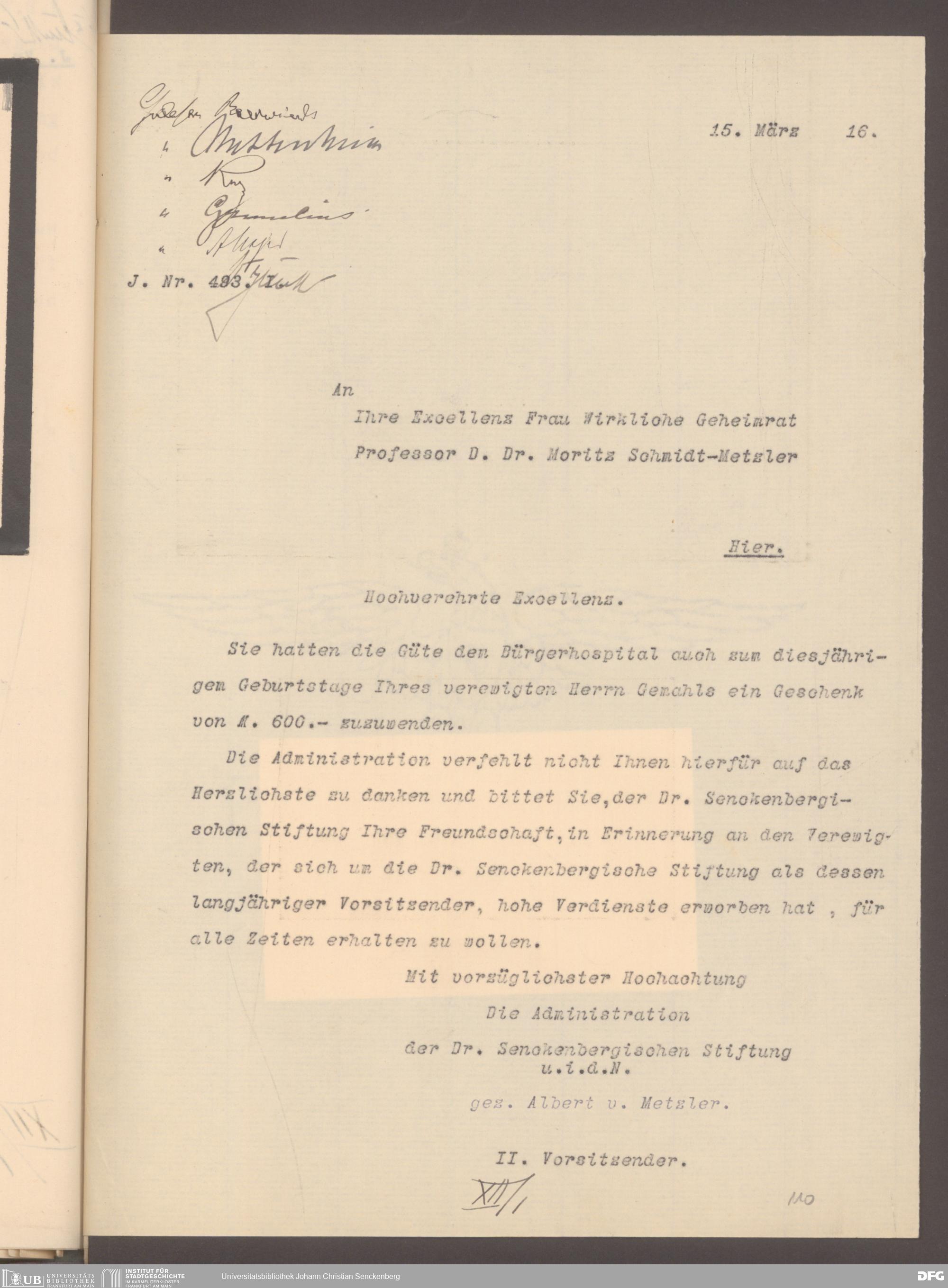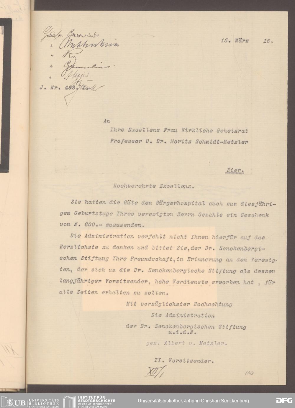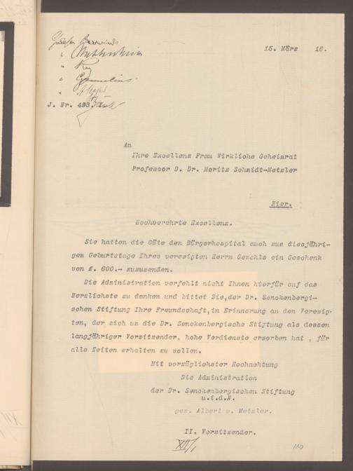 V48 Dr. Senckenbergische Stiftung, 577 - Schenkungen und Erbschaften