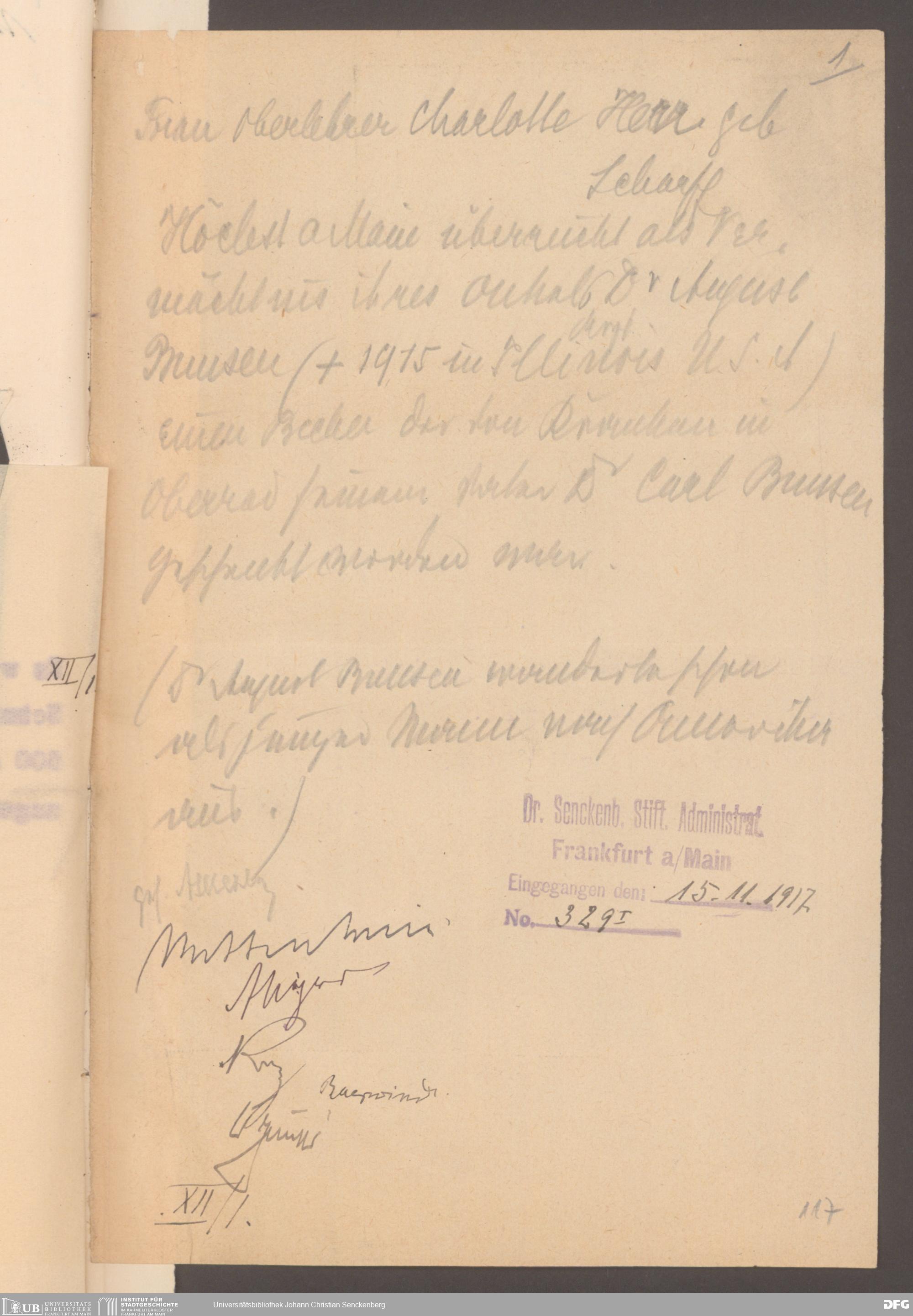 V48 Dr. Senckenbergische Stiftung, 577 - Schenkungen und Erbschaften