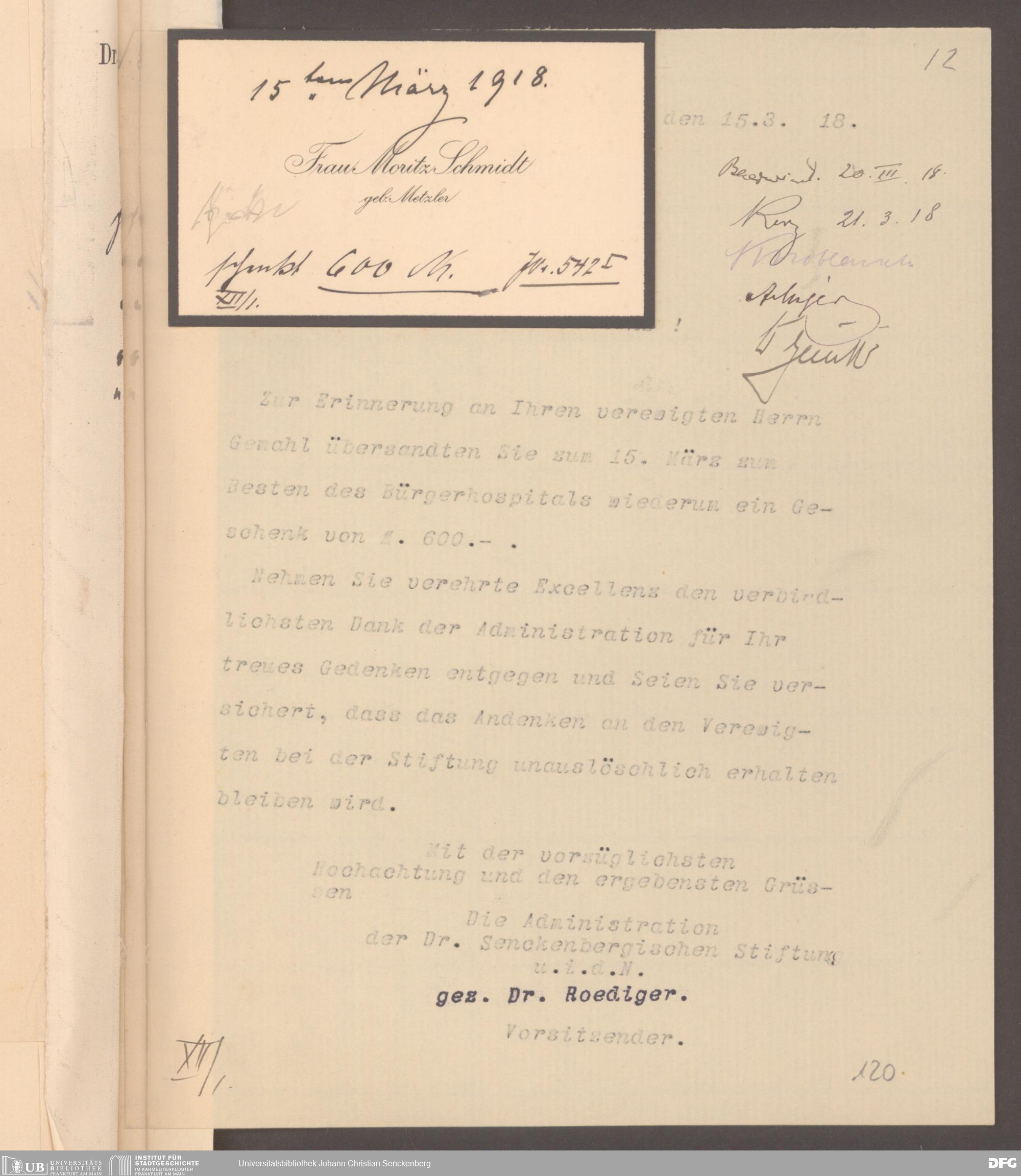 V48 Dr. Senckenbergische Stiftung, 577 - Schenkungen und Erbschaften