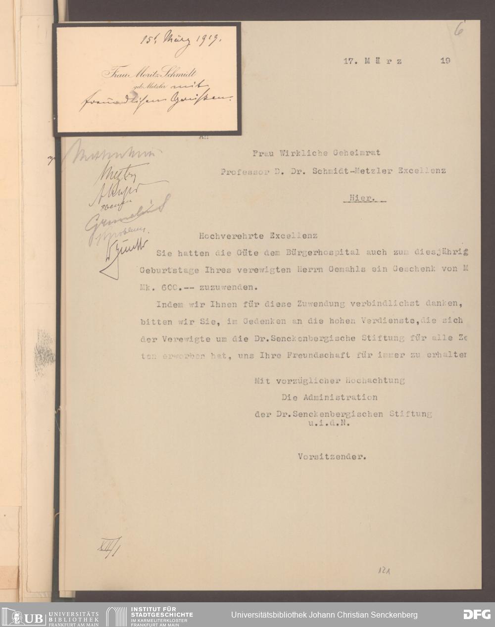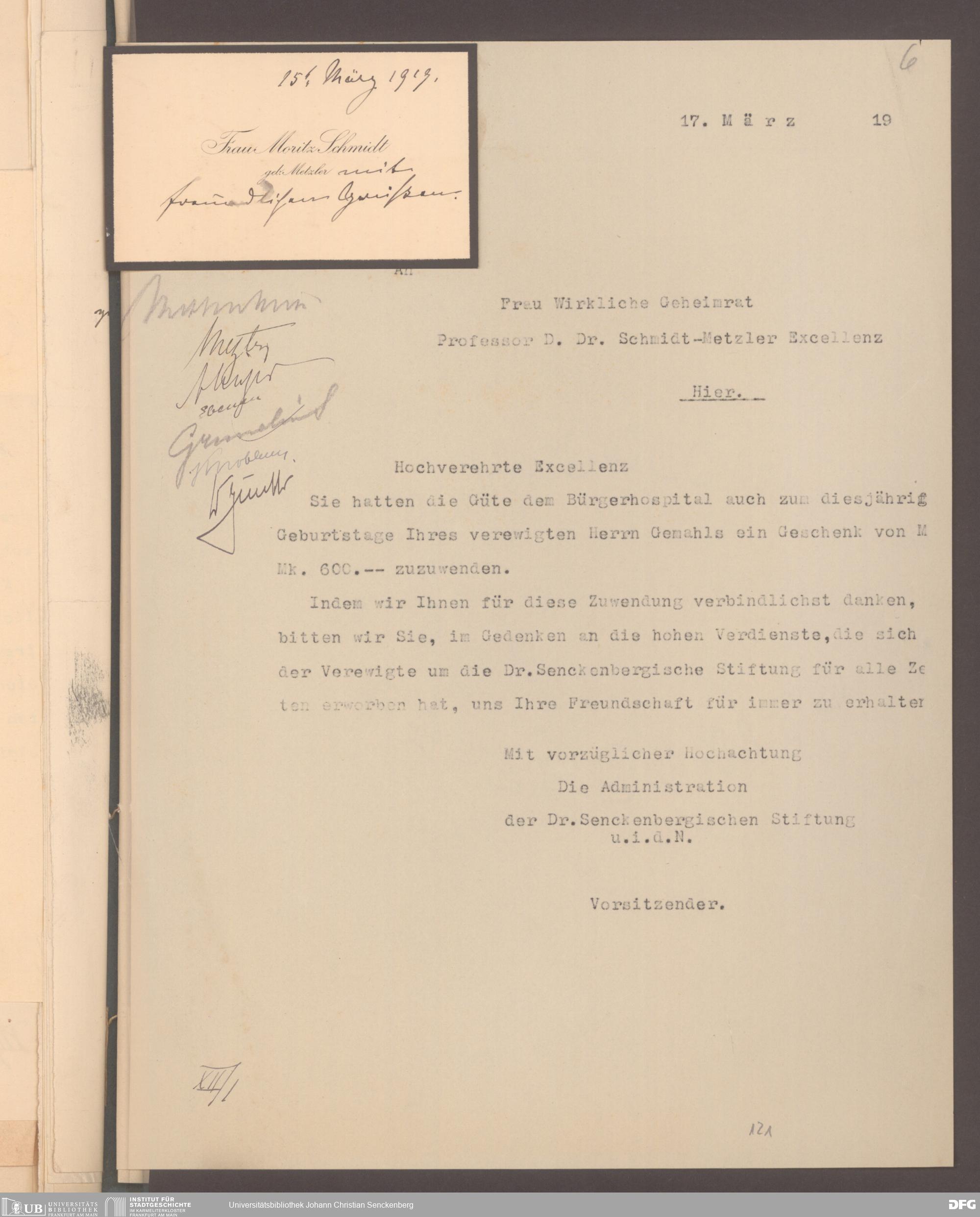 V48 Dr. Senckenbergische Stiftung, 577 - Schenkungen und Erbschaften