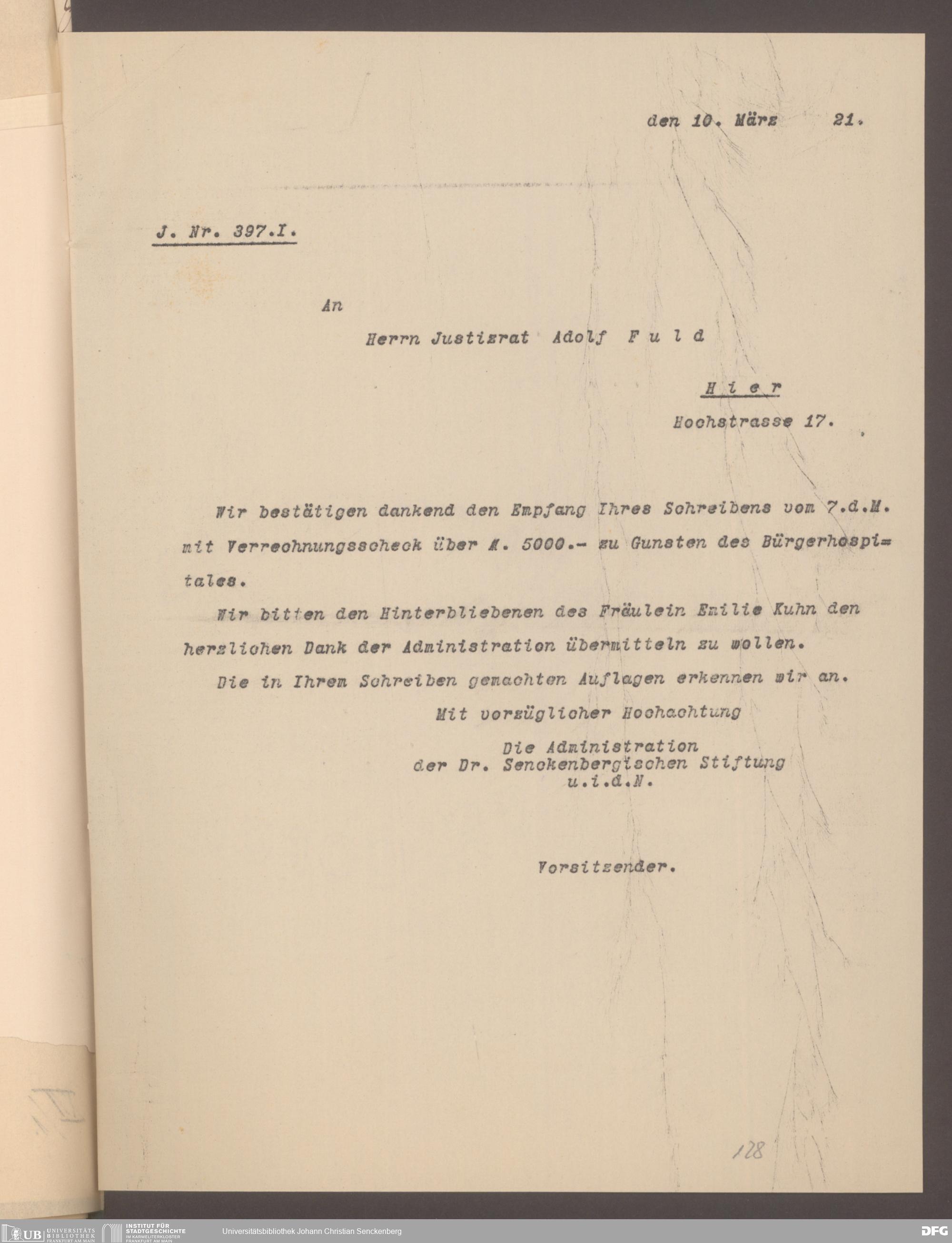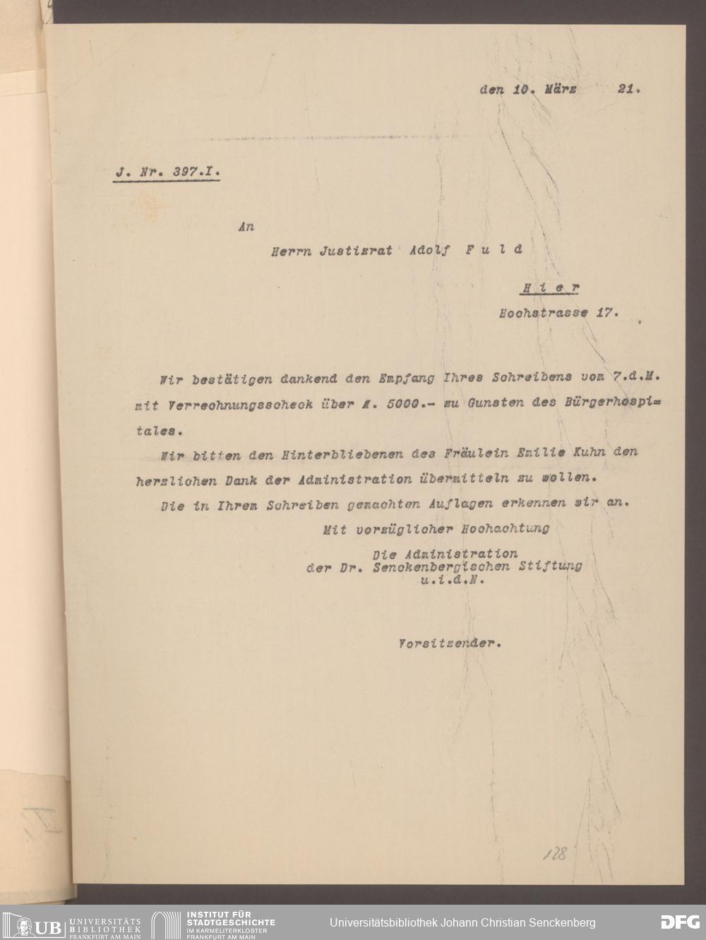 V48 Dr. Senckenbergische Stiftung, 577 - Schenkungen und Erbschaften