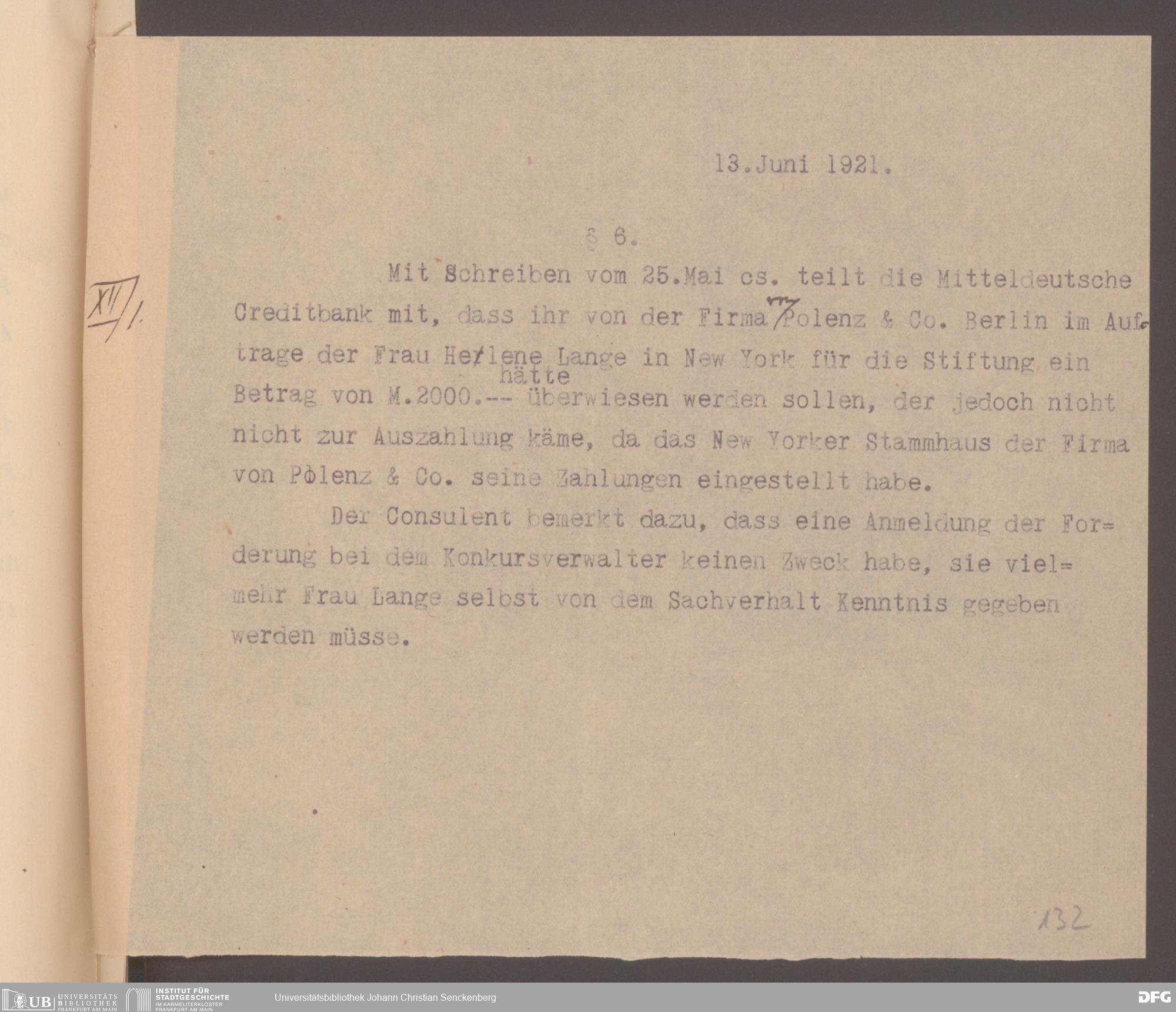 V48 Dr. Senckenbergische Stiftung, 577 - Schenkungen und Erbschaften
