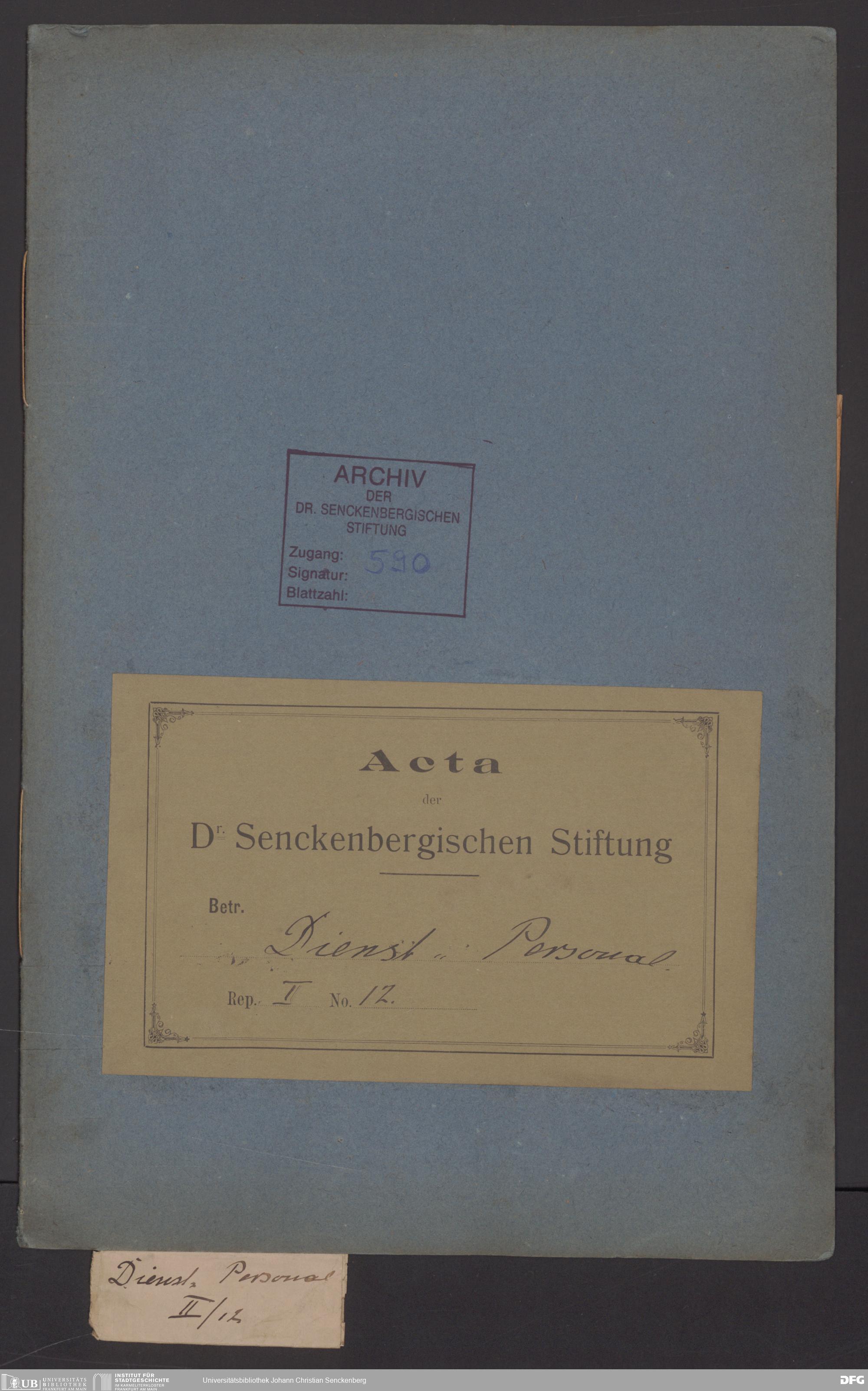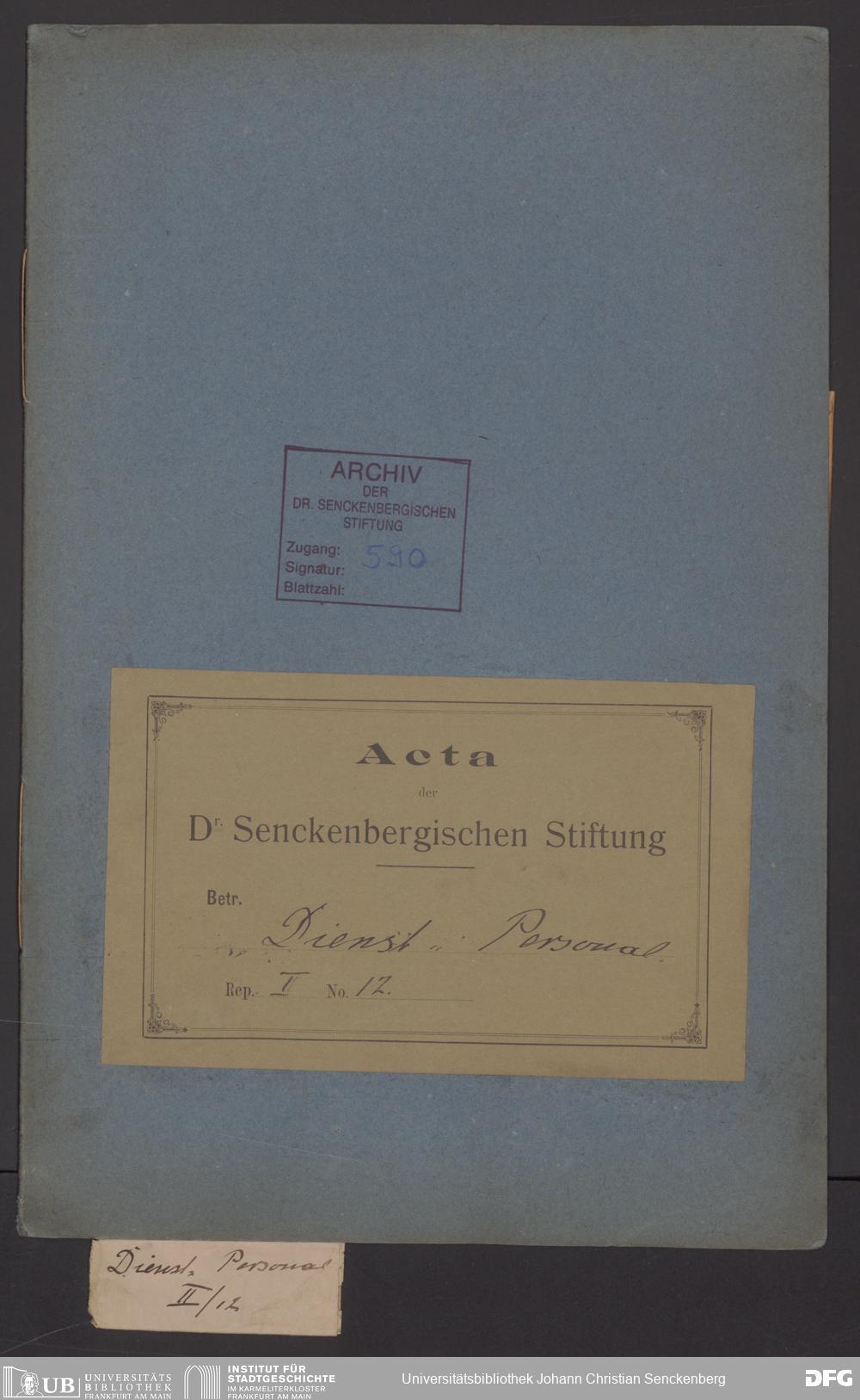 V48 Dr. Senckenbergische Stiftung, 590 - Dienst- und Arbeitsverträge sowie Zeugnisse