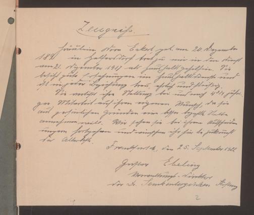 V48 Dr. Senckenbergische Stiftung, 590 - Dienst- und Arbeitsverträge sowie Zeugnisse
