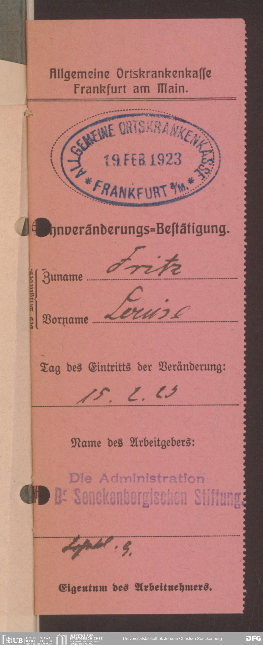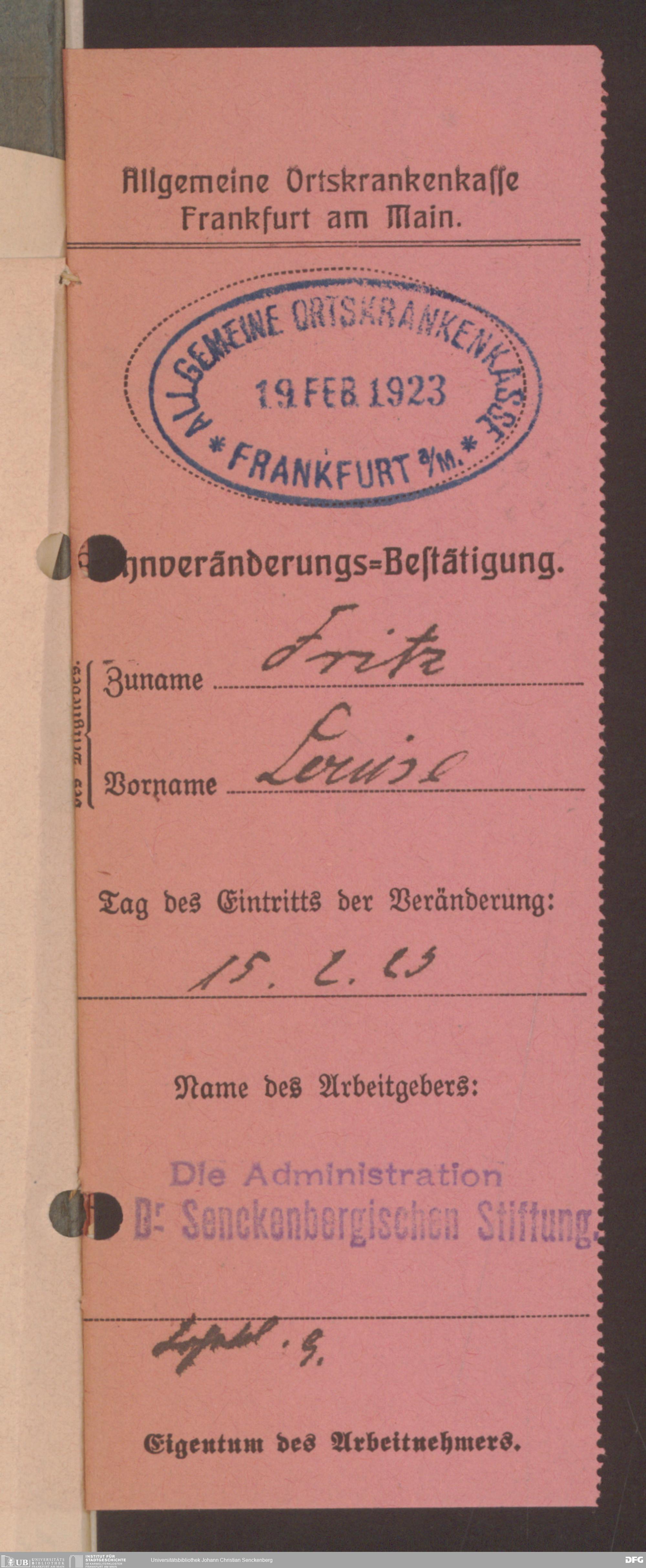 V48 Dr. Senckenbergische Stiftung, 590 - Dienst- und Arbeitsverträge sowie Zeugnisse