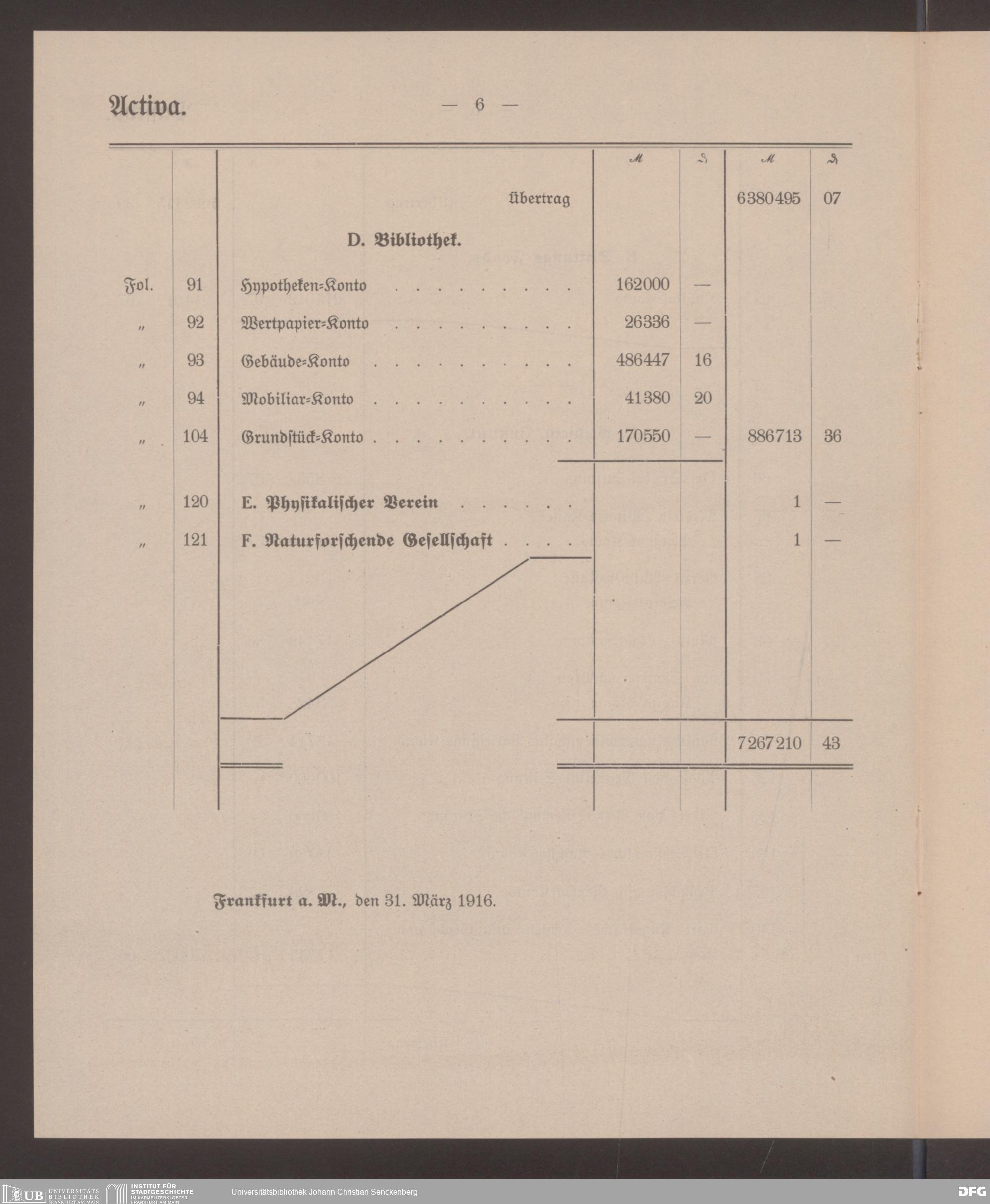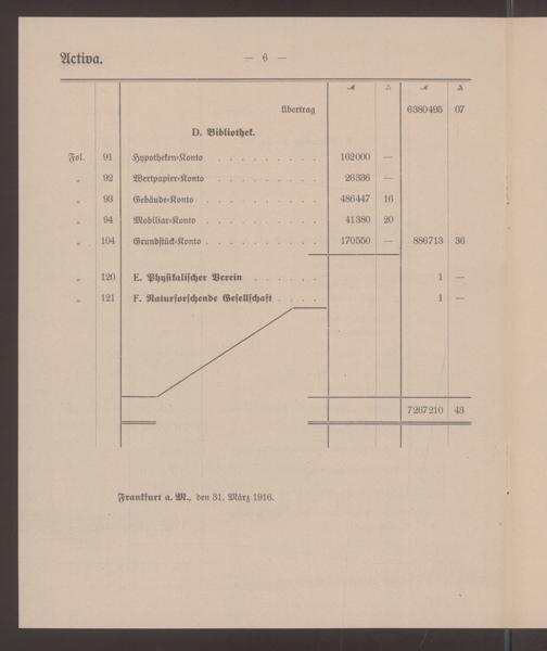 V48 Dr. Senckenbergische Stiftung, 597 - ... Bilanzen, 1915/1916