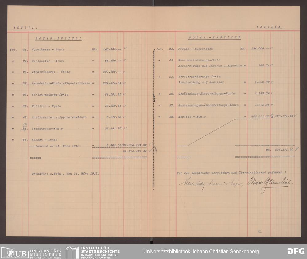 V48 Dr. Senckenbergische Stiftung, 597 - ... Bilanzen, 1915/1916
