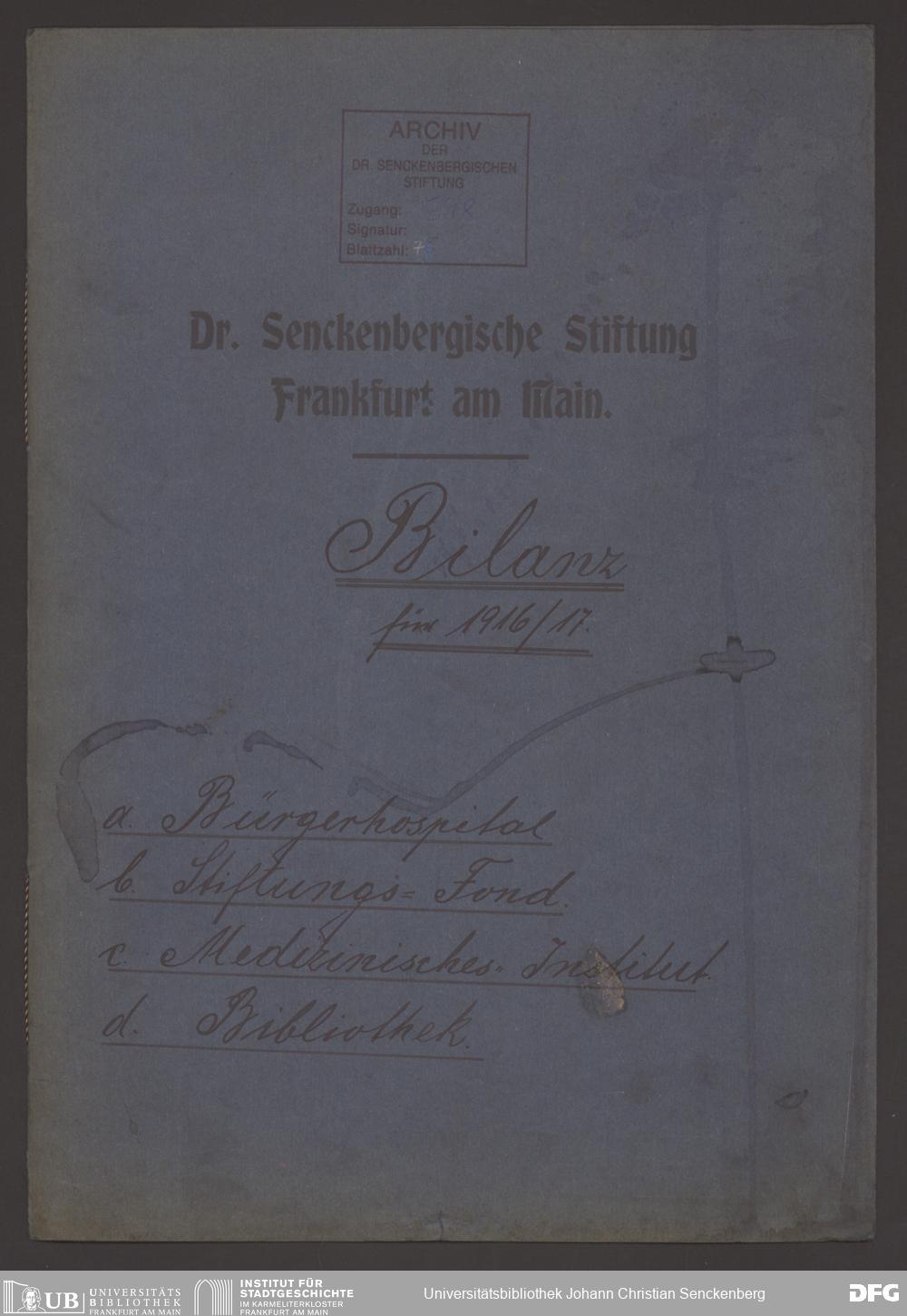 V48 Dr. Senckenbergische Stiftung, 598 - ... Bilanzen, 1916/17