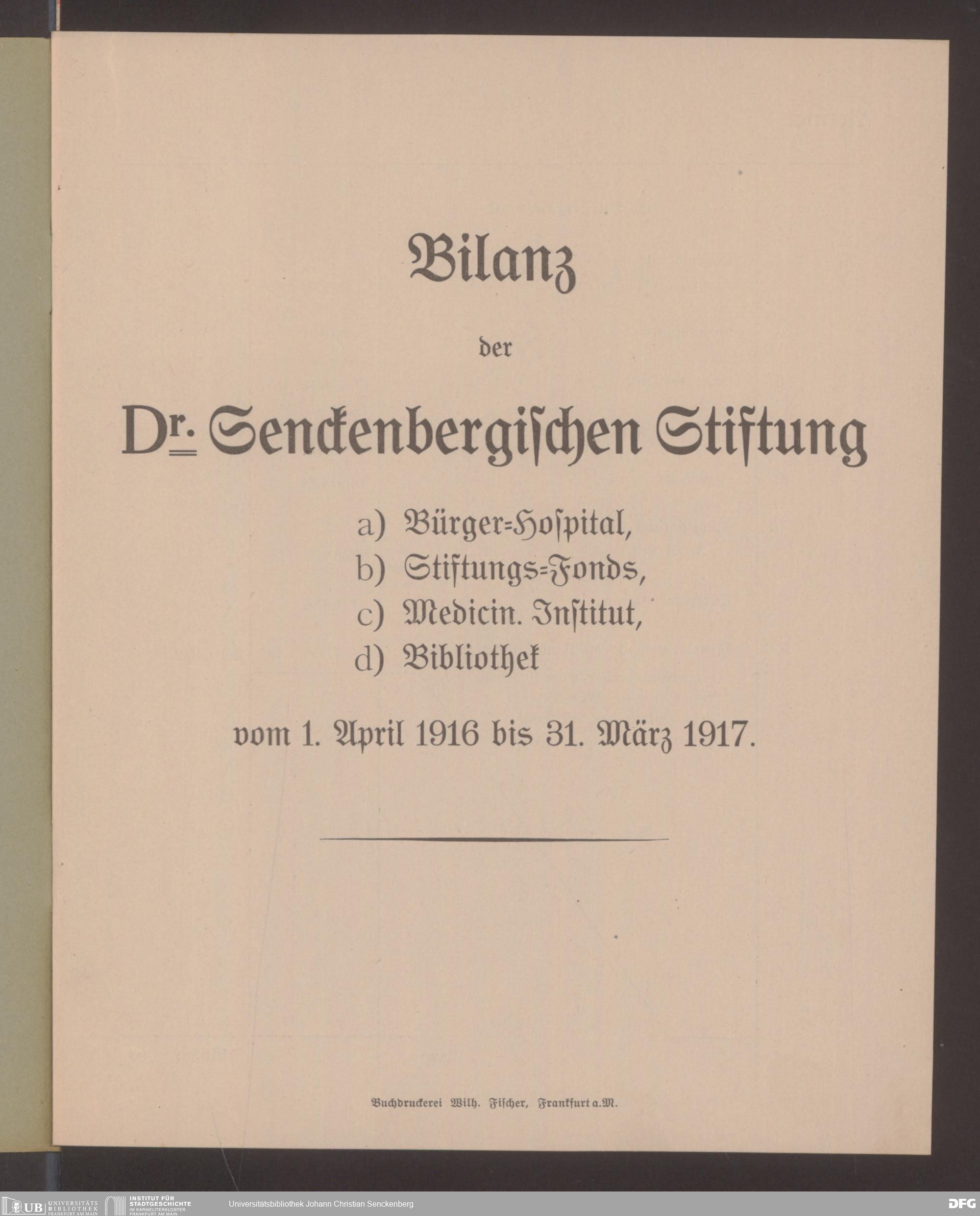 V48 Dr. Senckenbergische Stiftung, 598 - ... Bilanzen, 1916/17