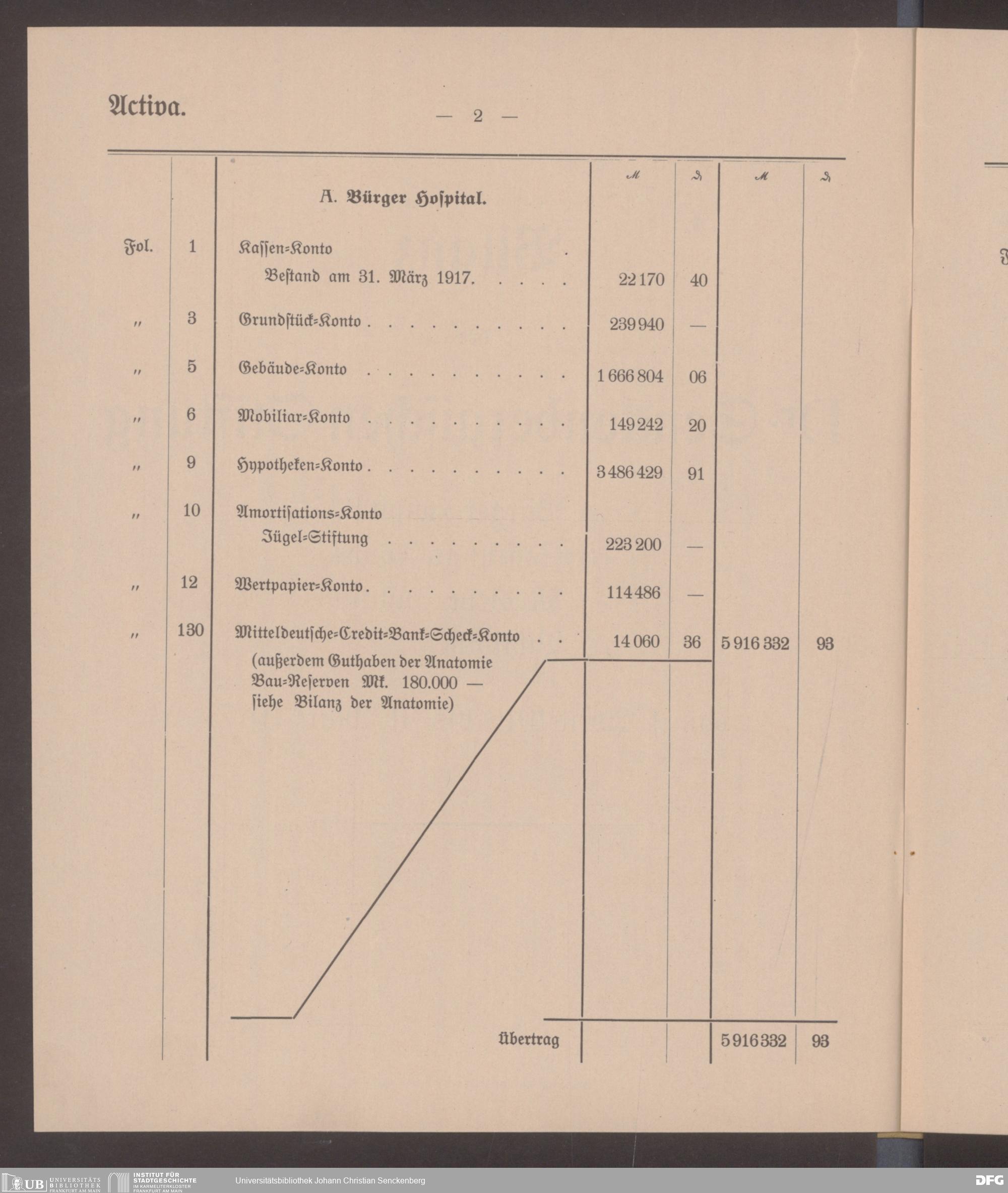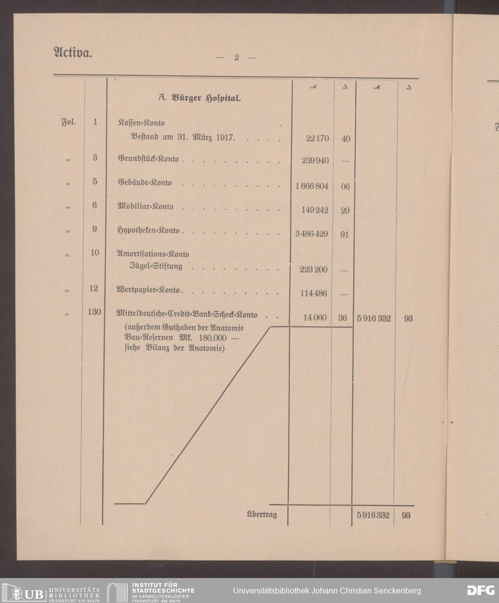 V48 Dr. Senckenbergische Stiftung, 598 - ... Bilanzen, 1916/17