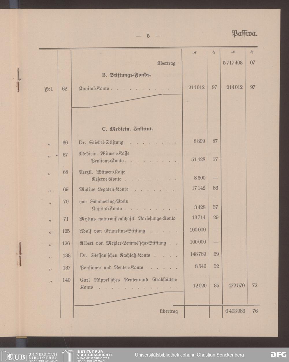 V48 Dr. Senckenbergische Stiftung, 598 - ... Bilanzen, 1916/17
