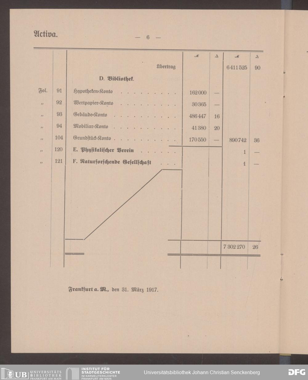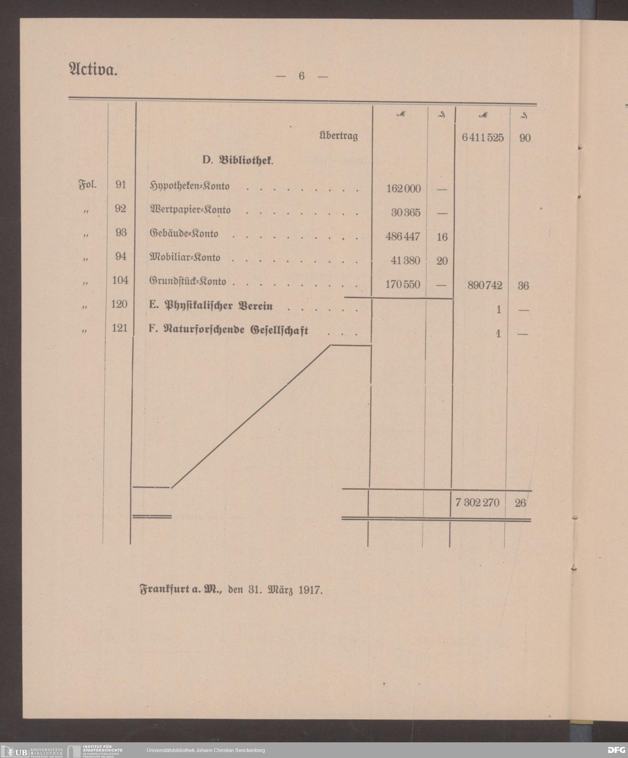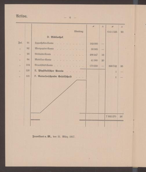 V48 Dr. Senckenbergische Stiftung, 598 - ... Bilanzen, 1916/17