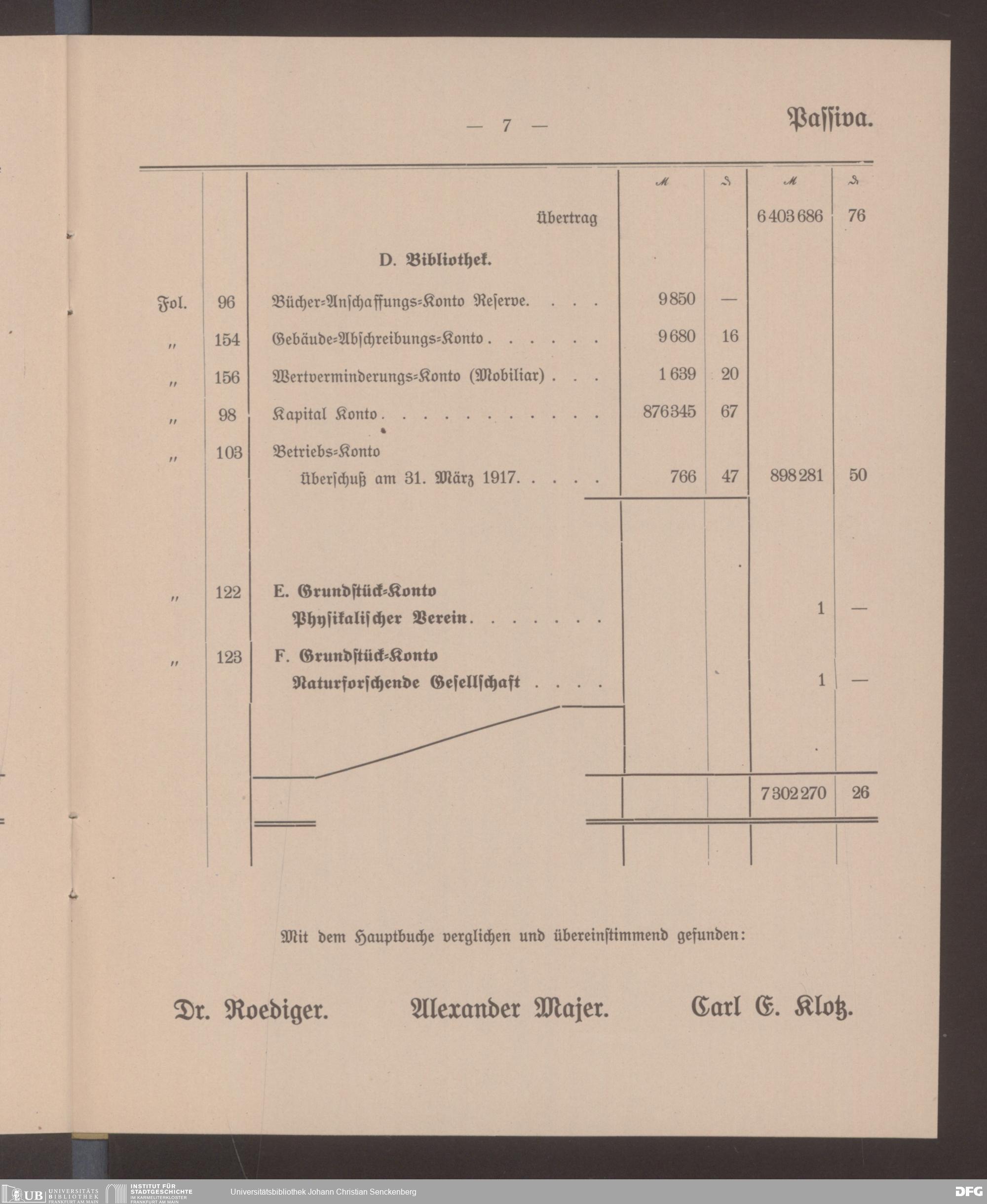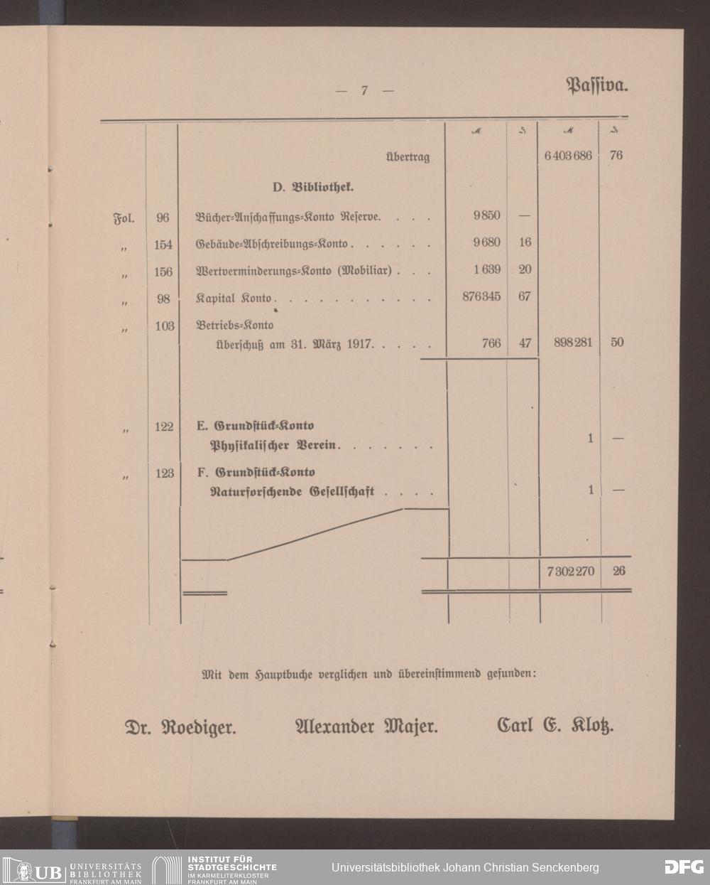 V48 Dr. Senckenbergische Stiftung, 598 - ... Bilanzen, 1916/17