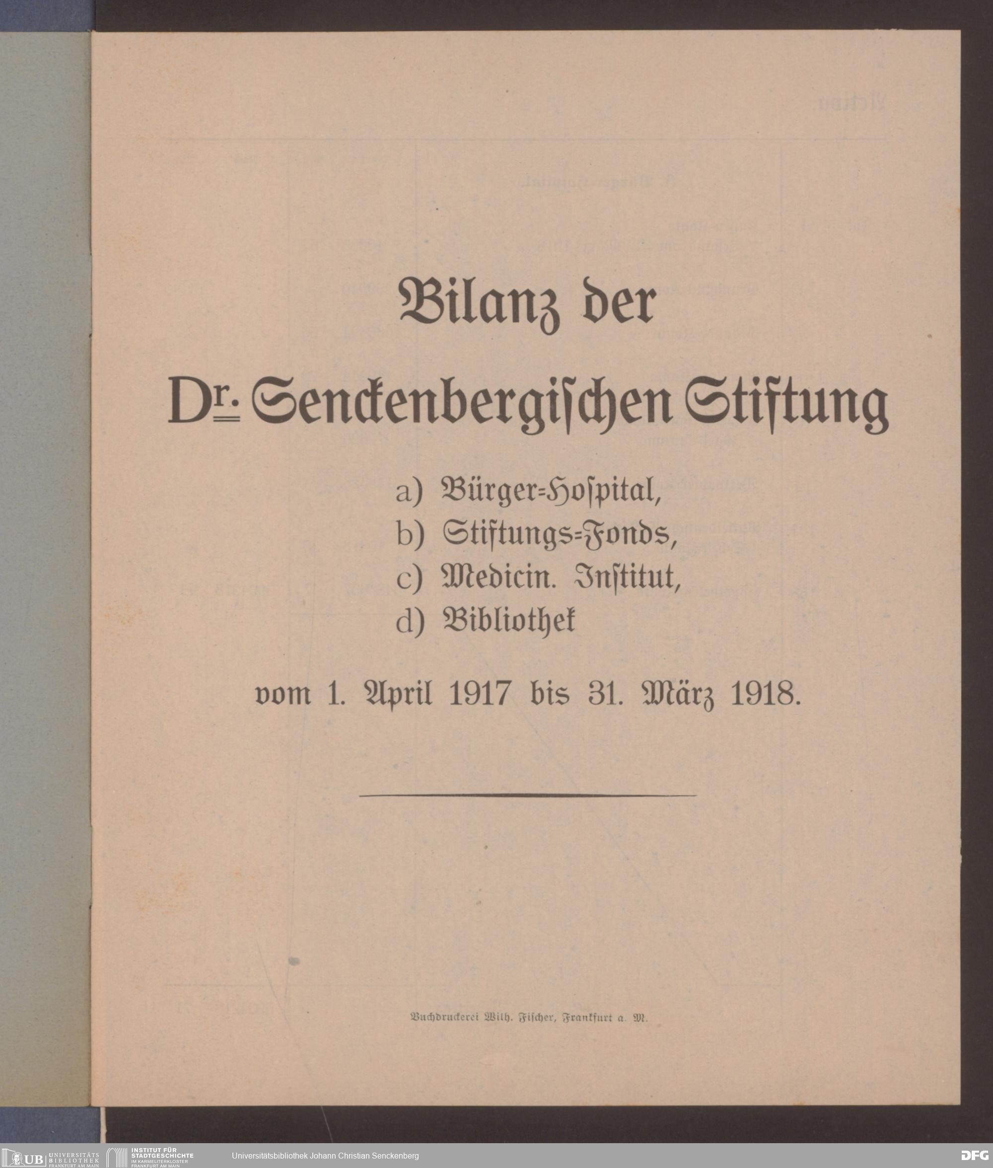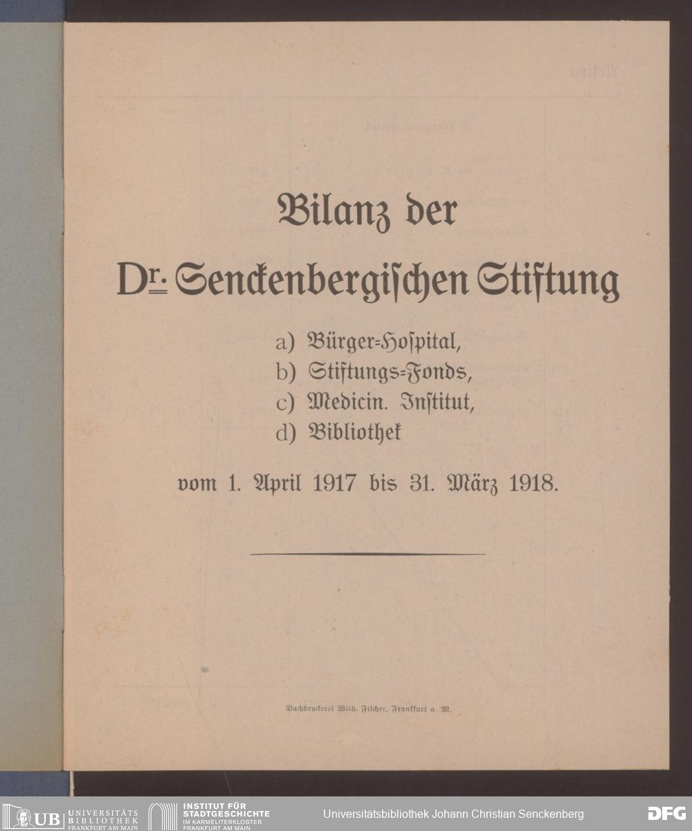 V48 Dr. Senckenbergische Stiftung, 599 - ... Bilanzen, 1917/18