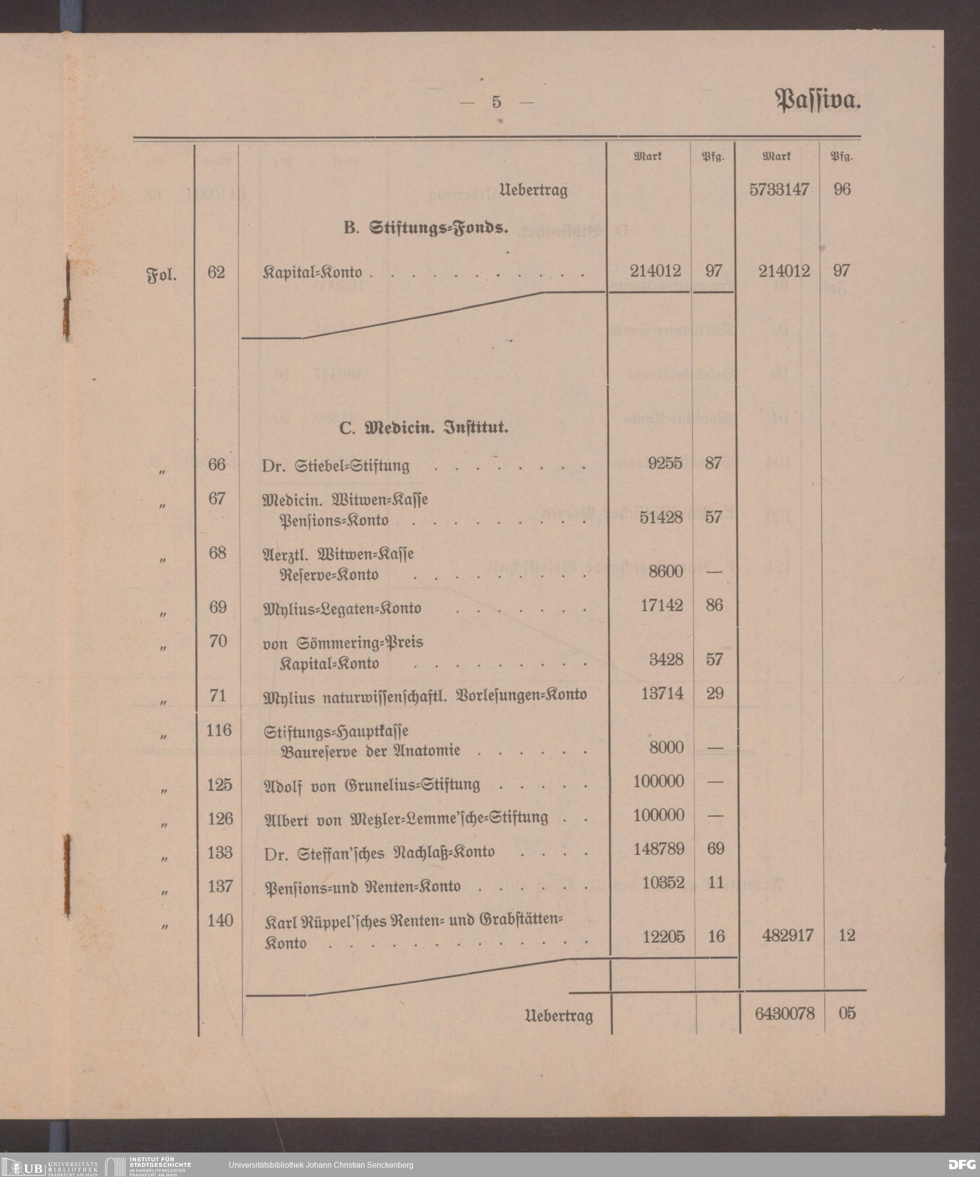 V48 Dr. Senckenbergische Stiftung, 599 - ... Bilanzen, 1917/18