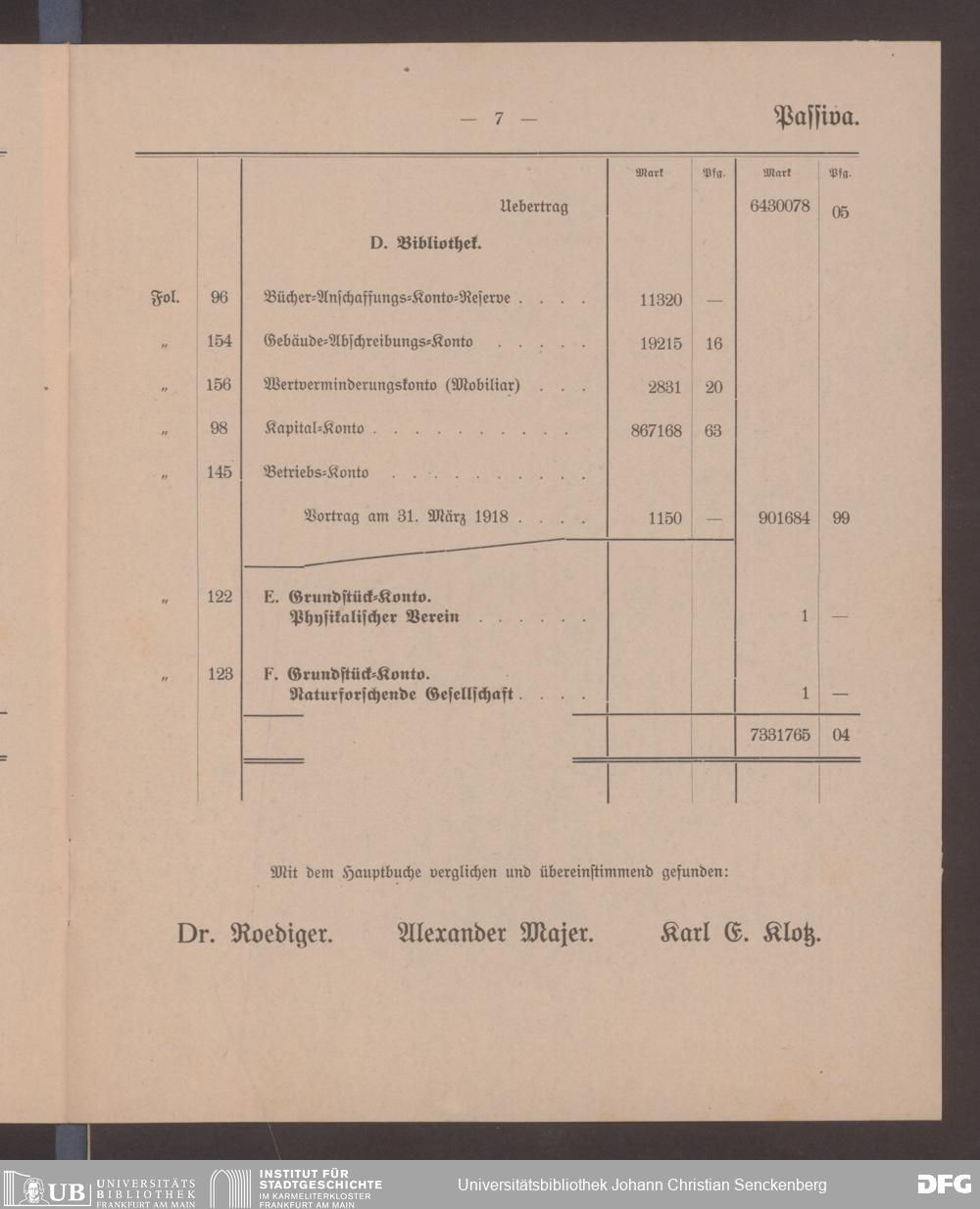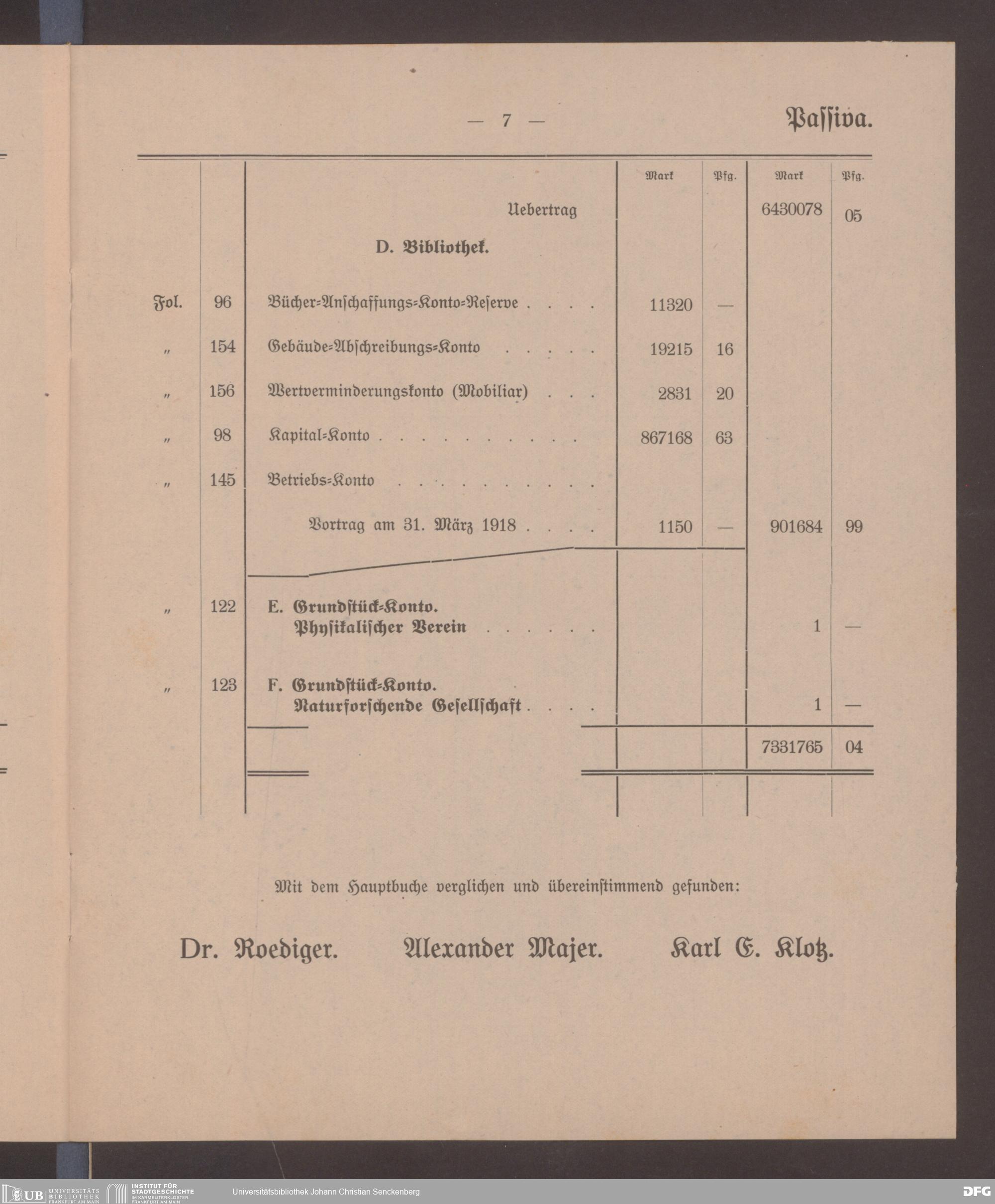 V48 Dr. Senckenbergische Stiftung, 599 - ... Bilanzen, 1917/18