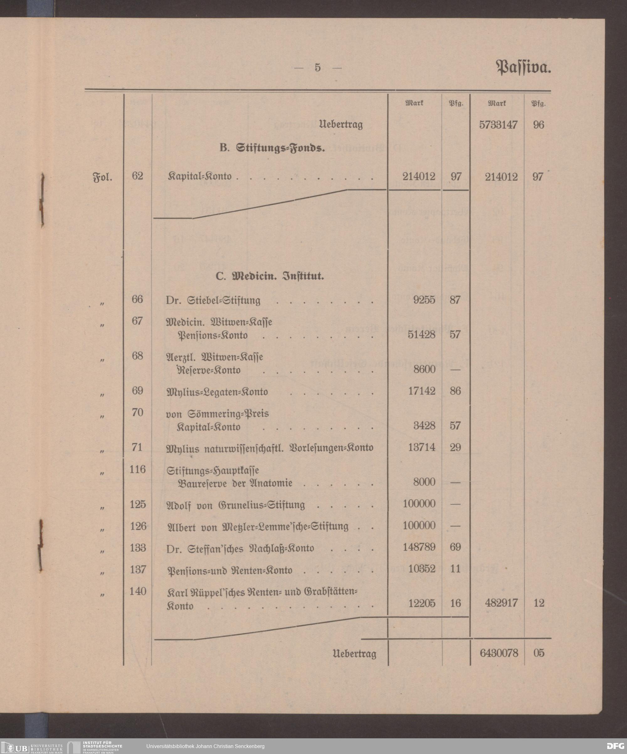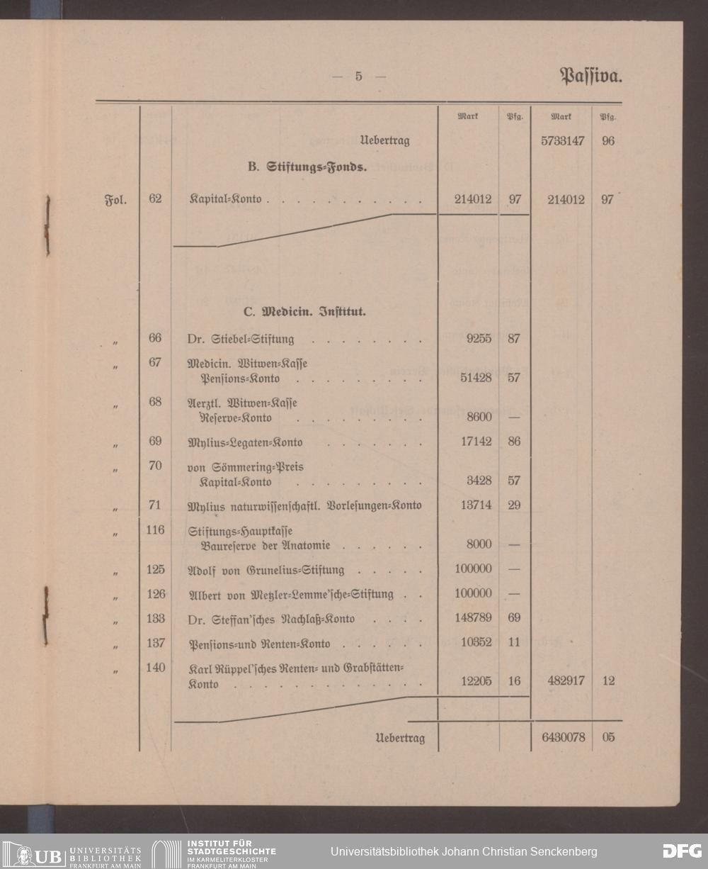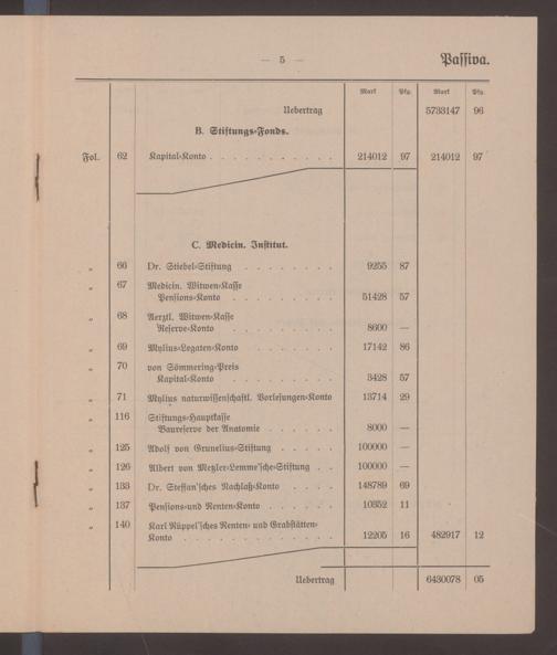 V48 Dr. Senckenbergische Stiftung, 599 - ... Bilanzen, 1917/18