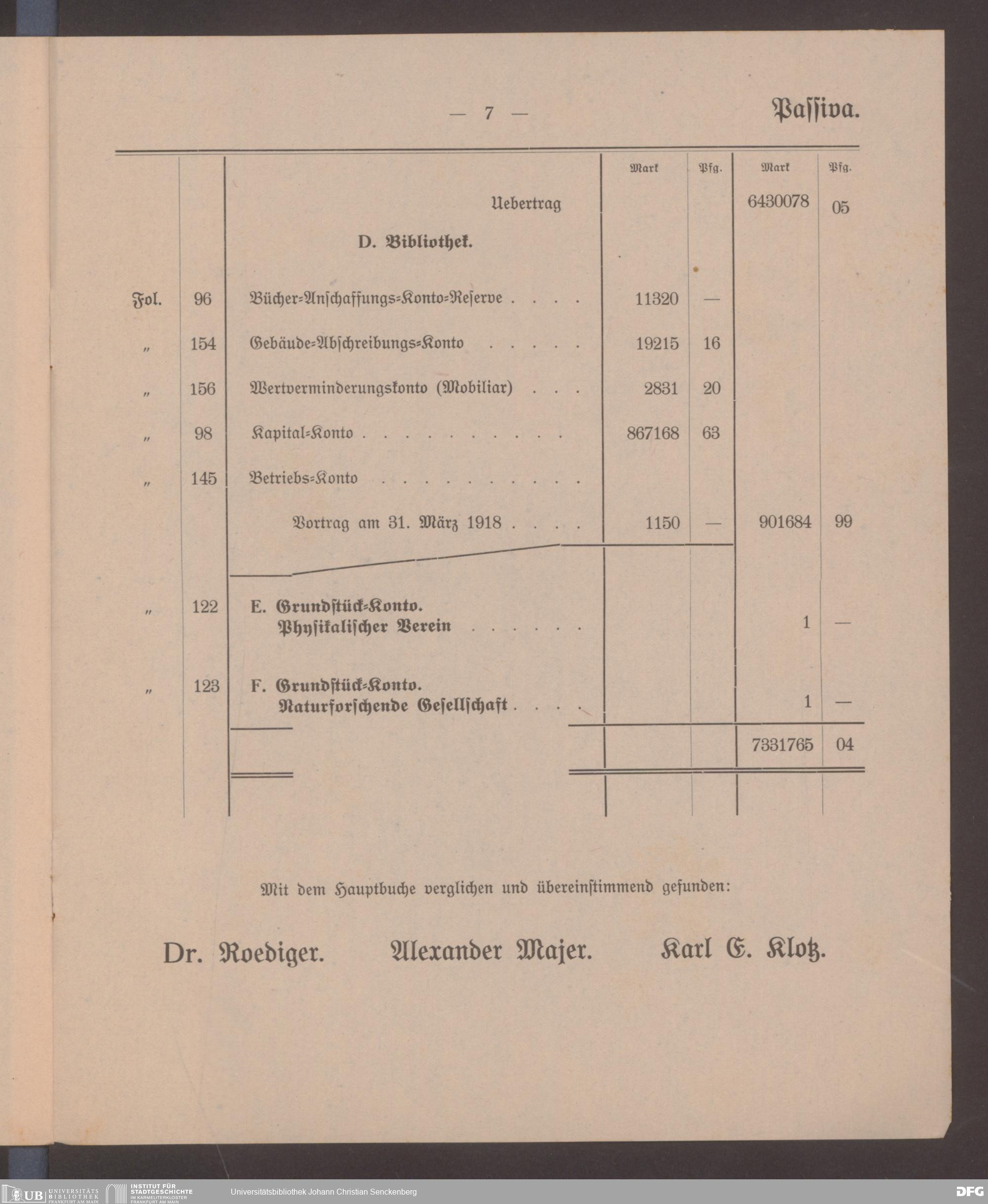 V48 Dr. Senckenbergische Stiftung, 599 - ... Bilanzen, 1917/18