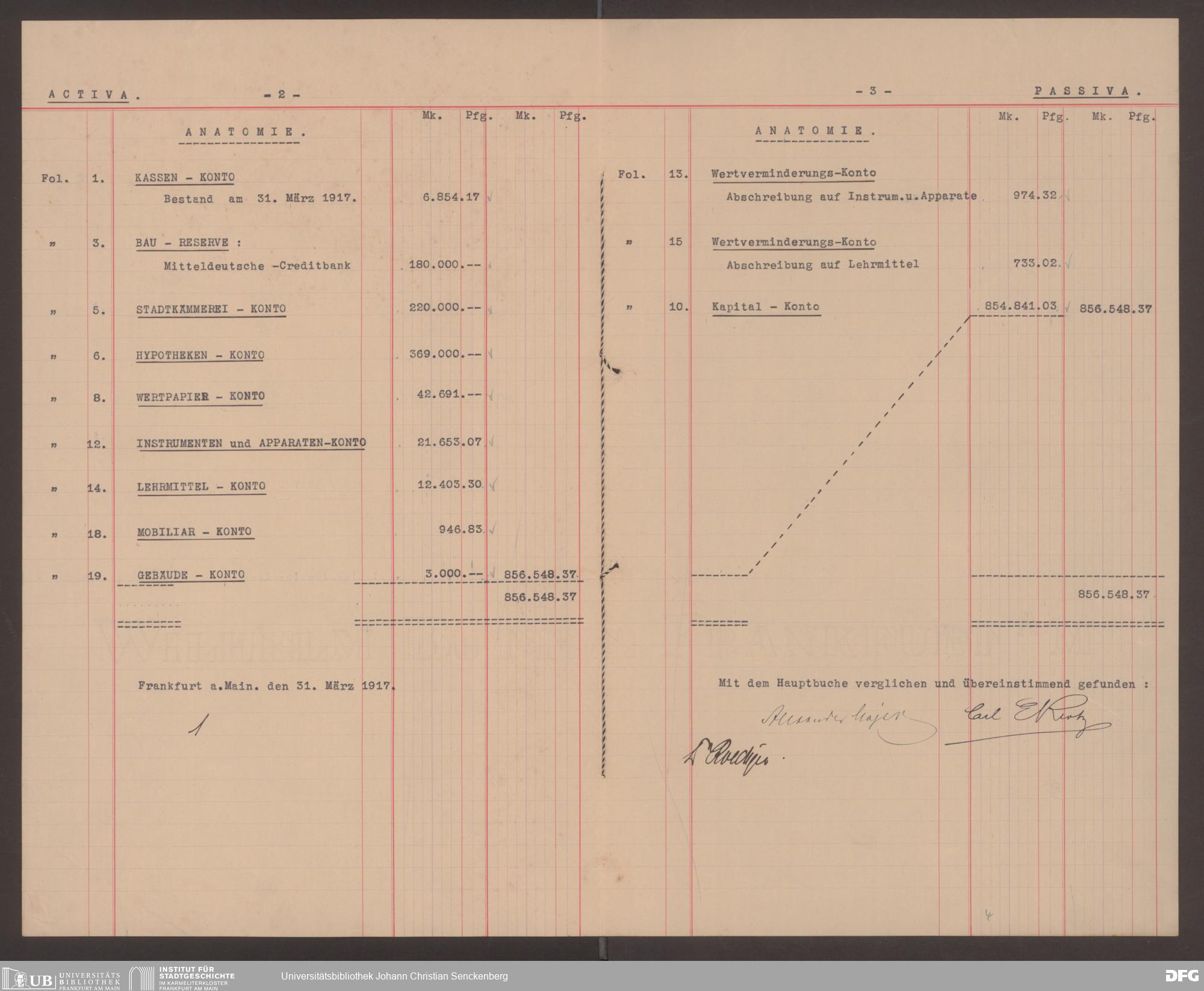 V48 Dr. Senckenbergische Stiftung, 599 - ... Bilanzen, 1917/18