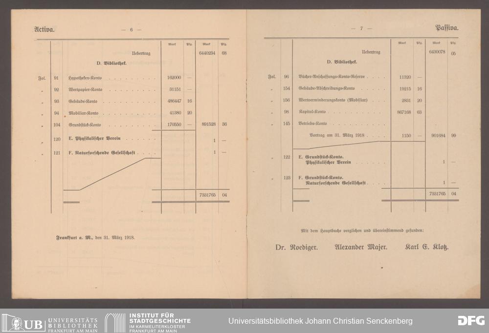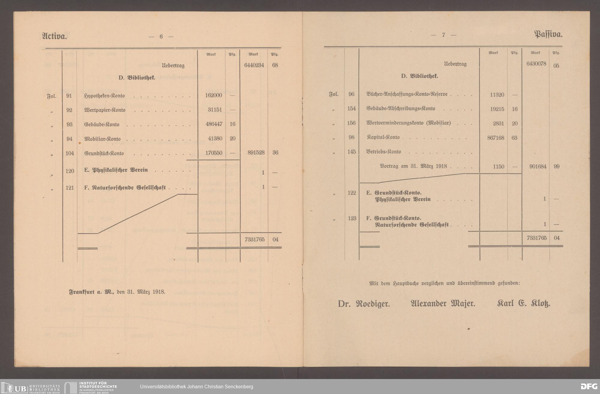 V48 Dr. Senckenbergische Stiftung, 600 - ... Bilanzen, 1917/18