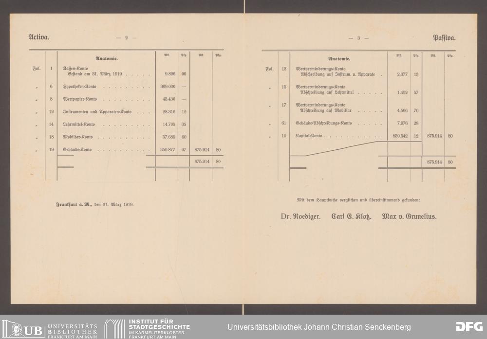 V48 Dr. Senckenbergische Stiftung, 601 - ... Bilanzen, 1918/19