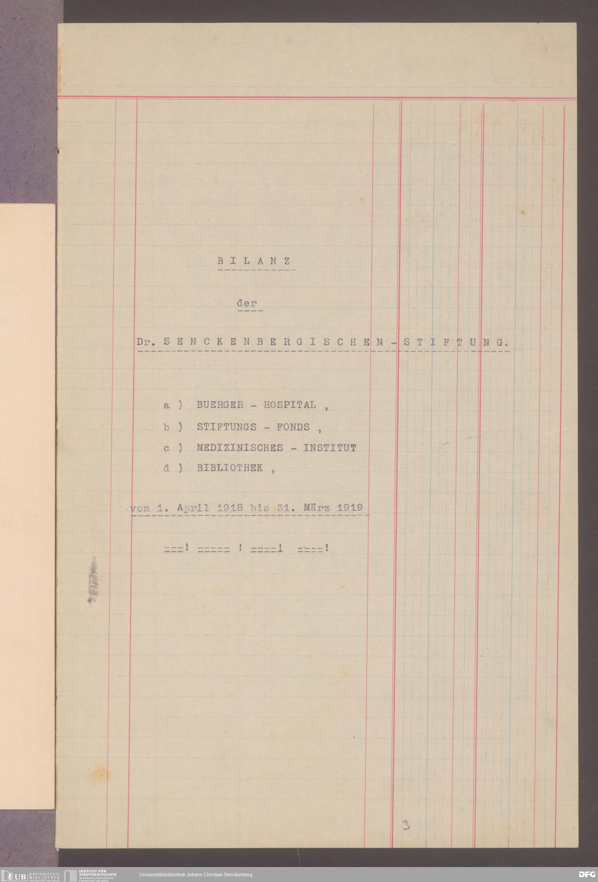 V48 Dr. Senckenbergische Stiftung, 601 - ... Bilanzen, 1918/19
