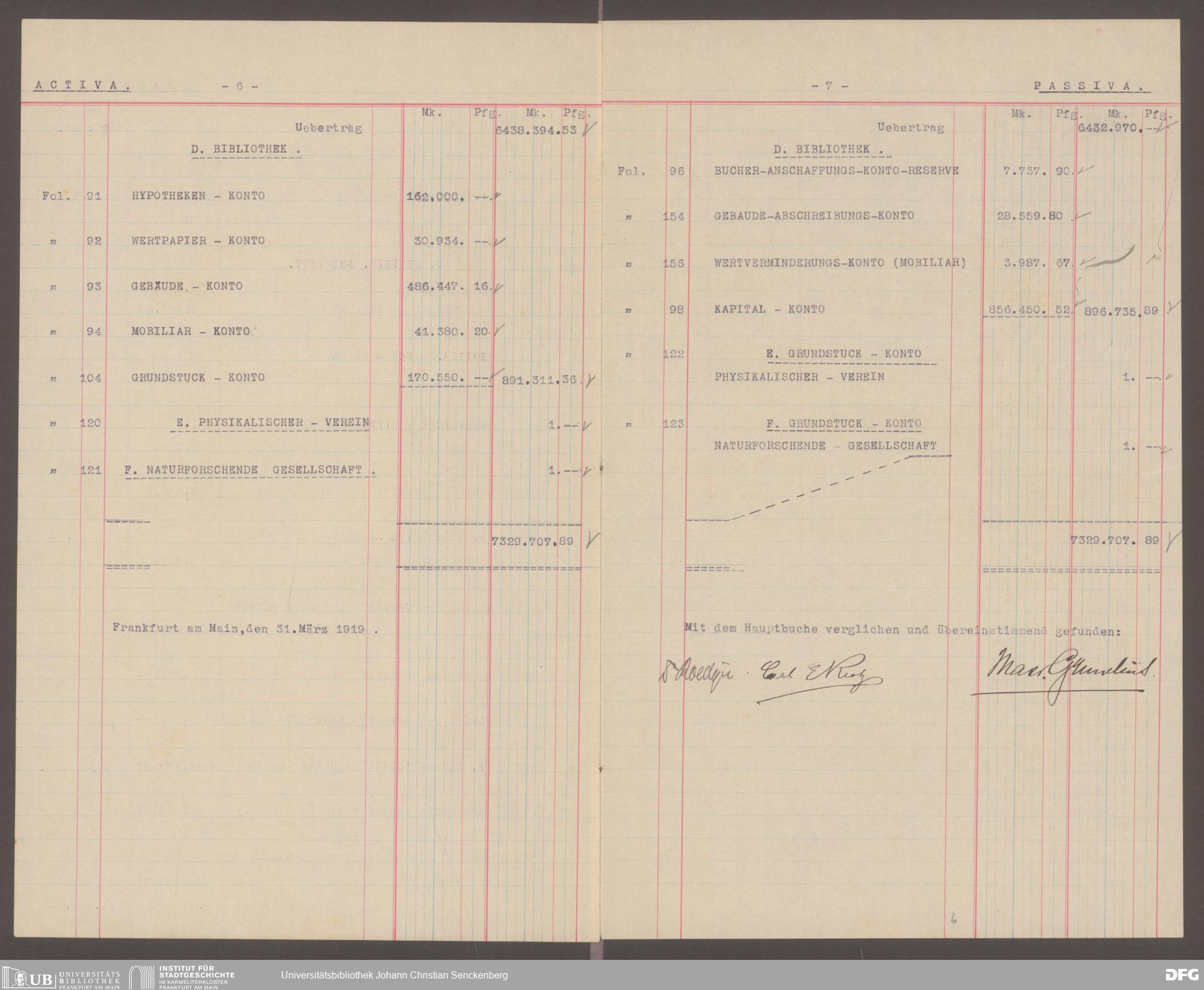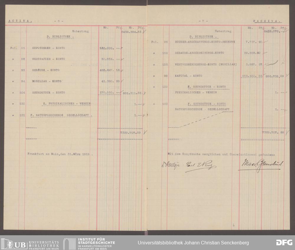 V48 Dr. Senckenbergische Stiftung, 601 - ... Bilanzen, 1918/19