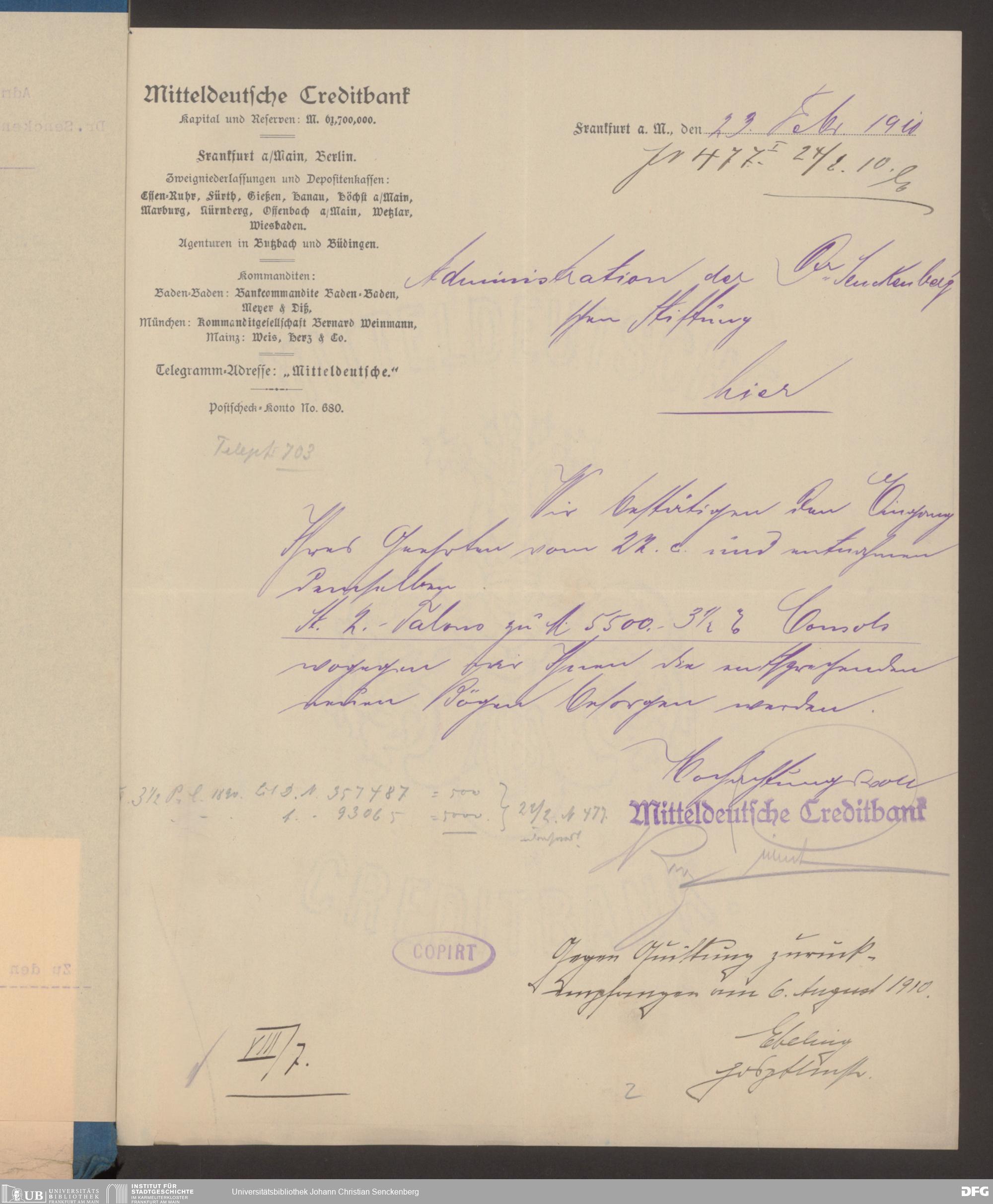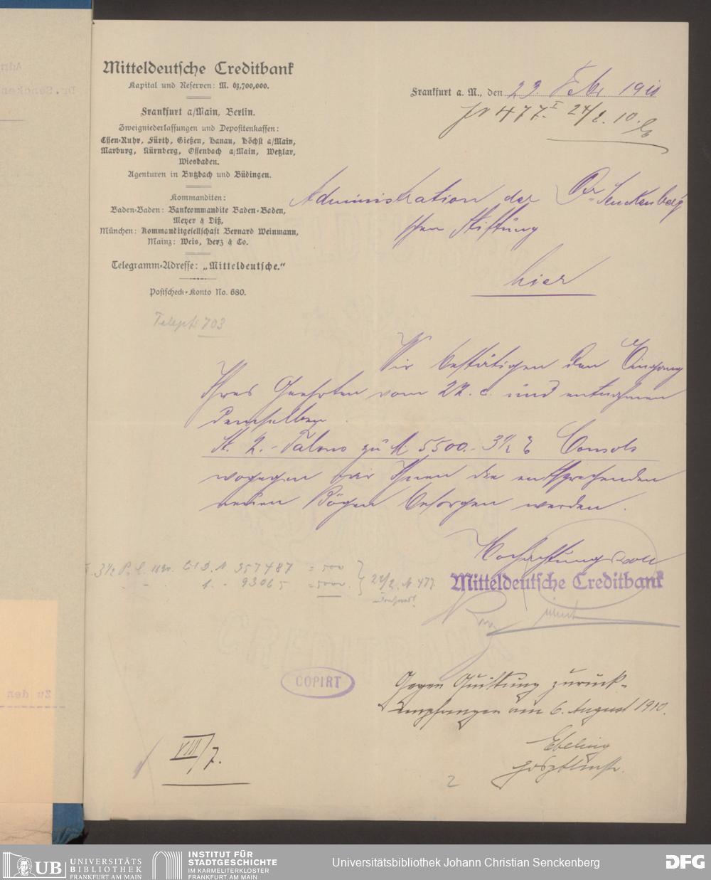 V48 Dr. Senckenbergische Stiftung, 608 - Mitteldeutsche Creditbank