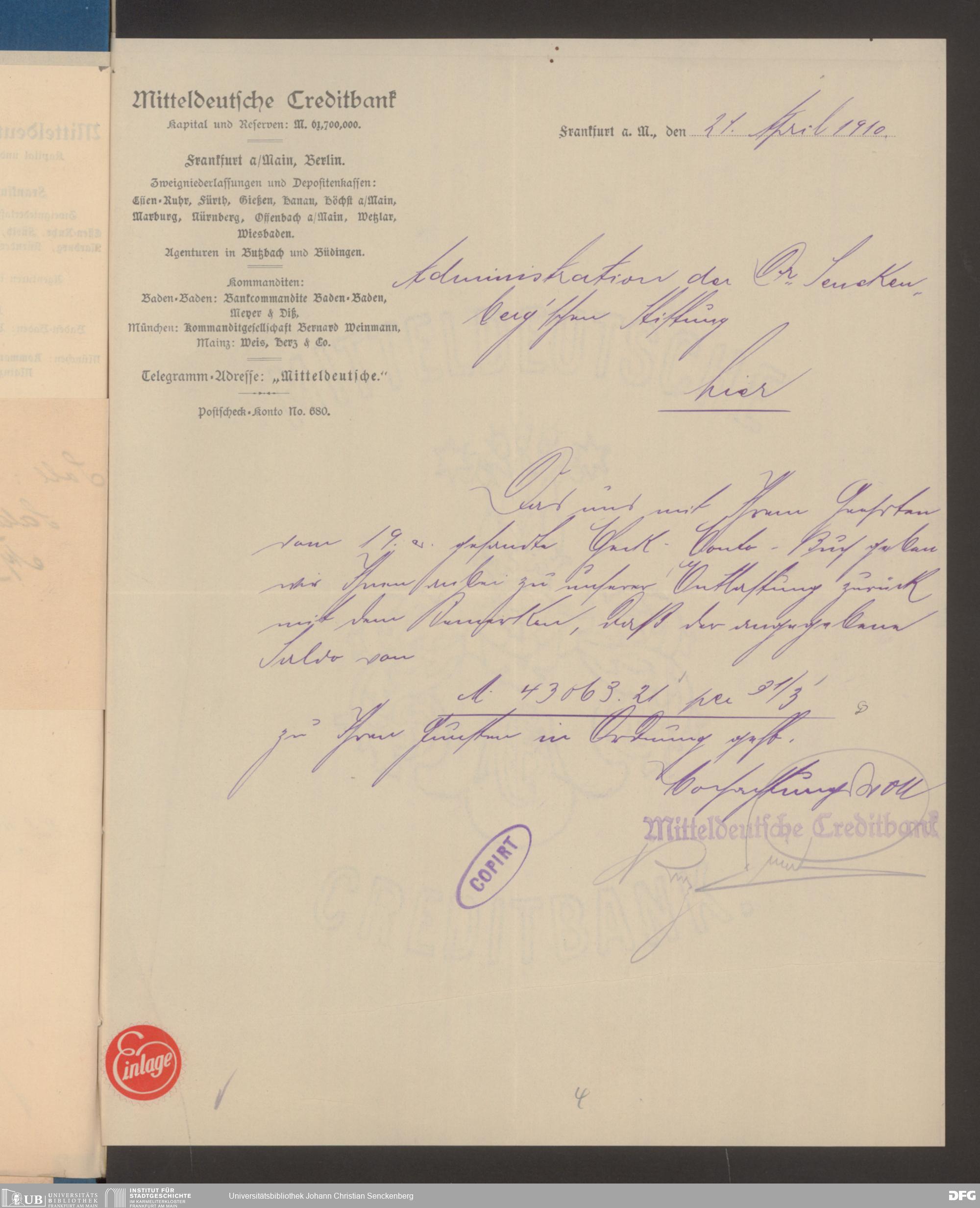 V48 Dr. Senckenbergische Stiftung, 608 - Mitteldeutsche Creditbank