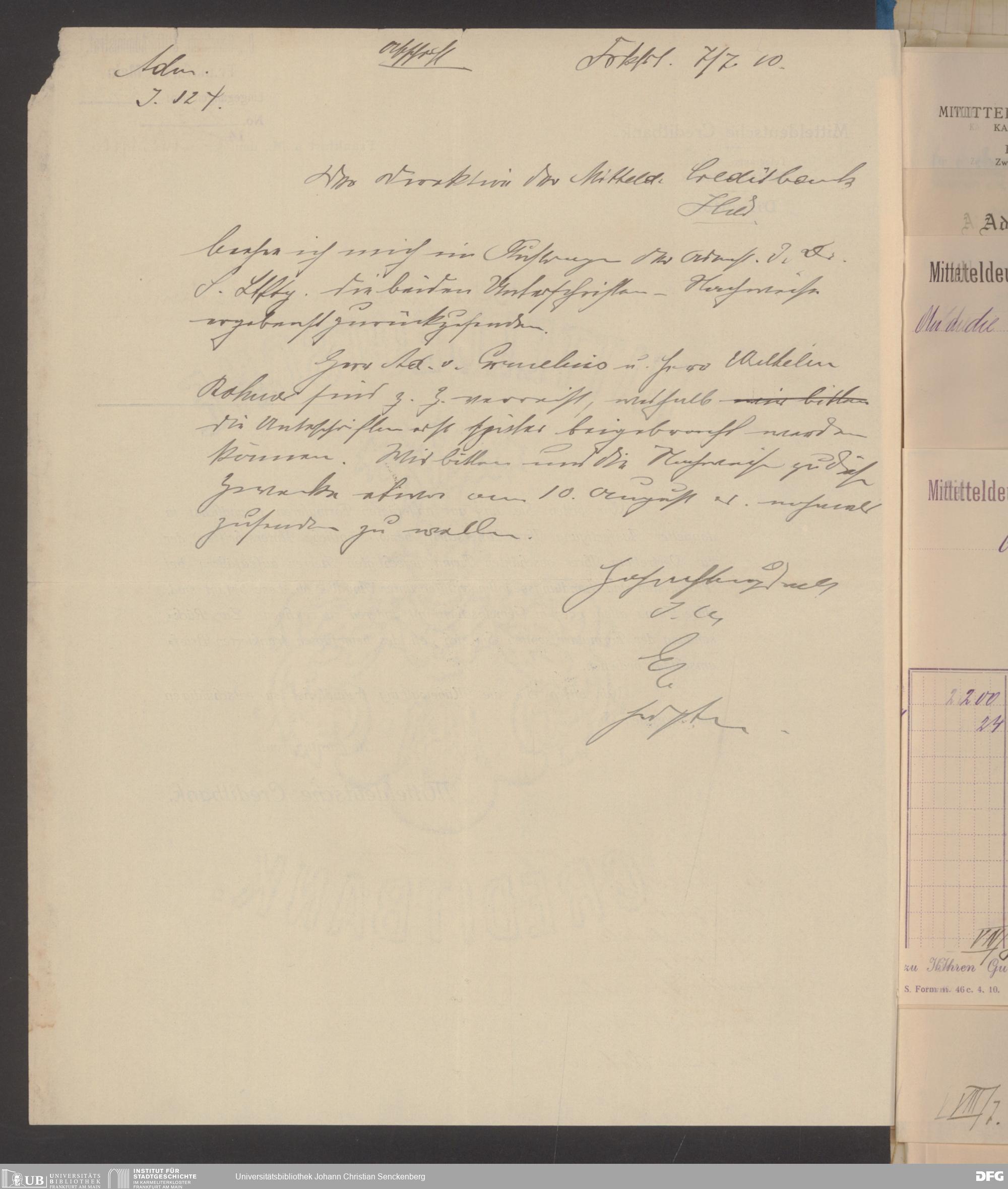V48 Dr. Senckenbergische Stiftung, 608 - Mitteldeutsche Creditbank