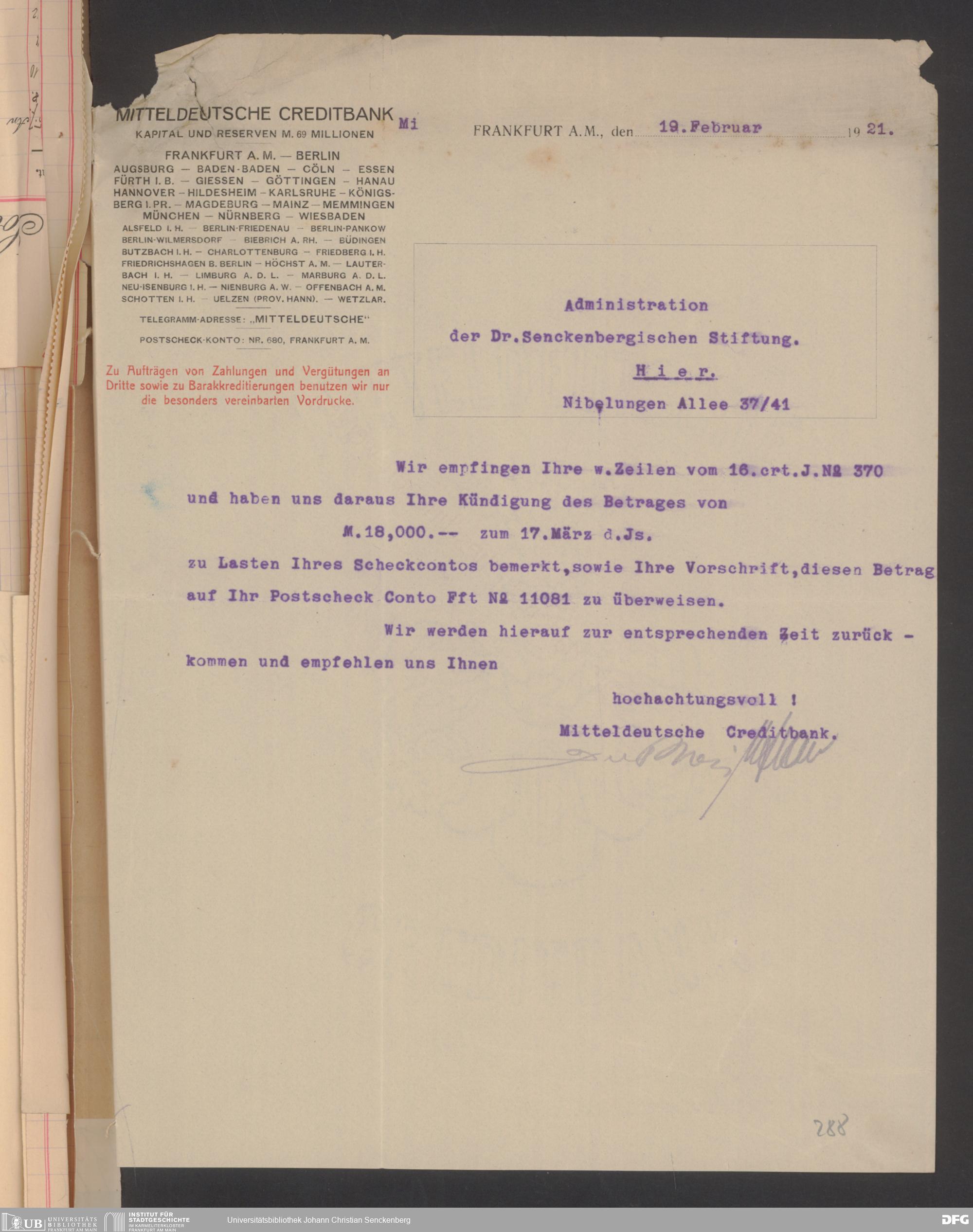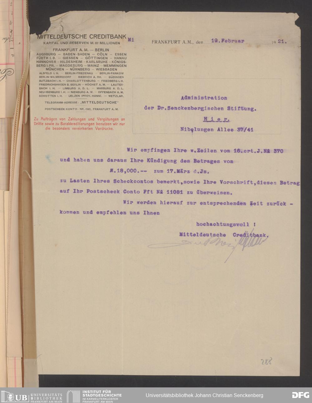 V48 Dr. Senckenbergische Stiftung, 608 - Mitteldeutsche Creditbank