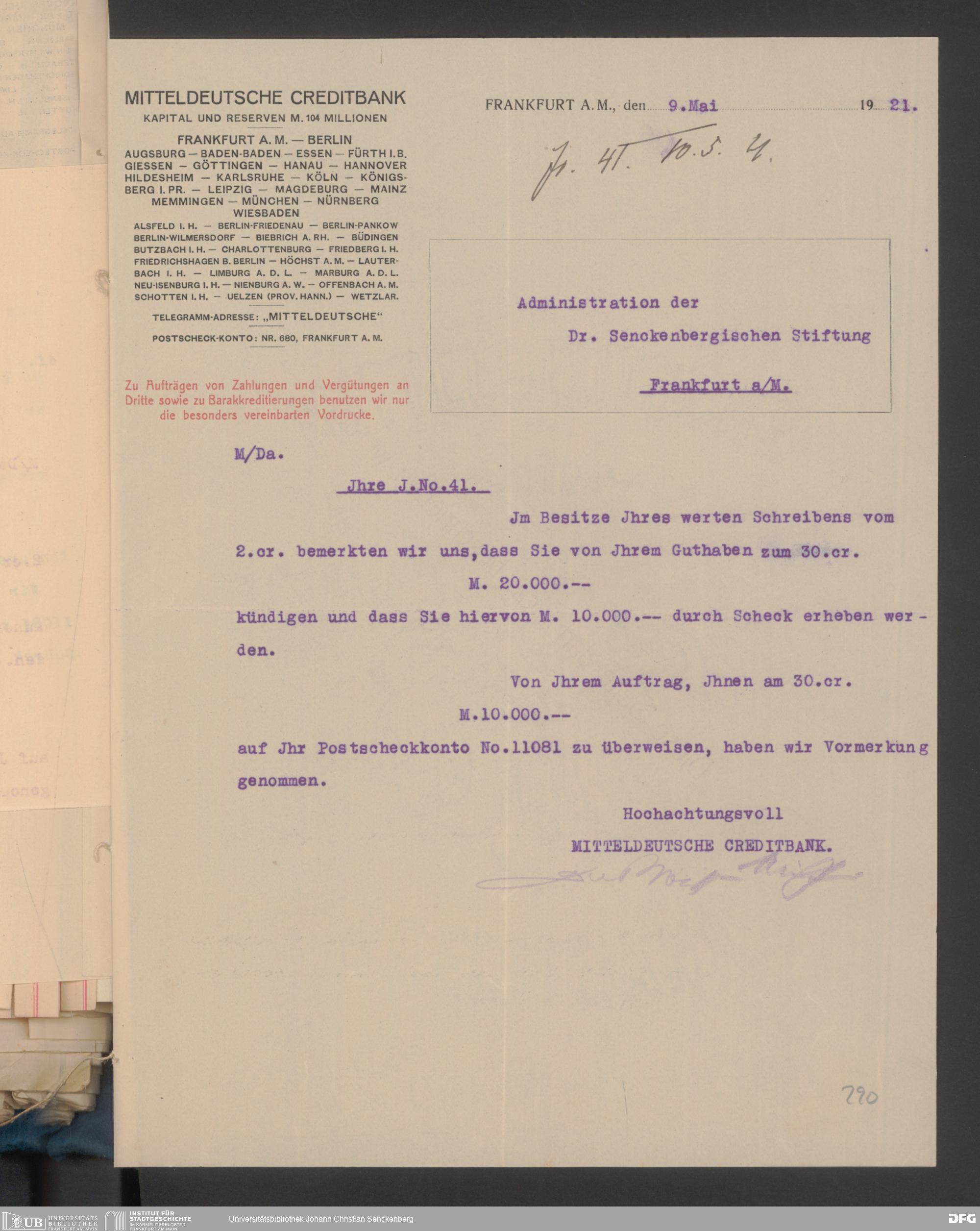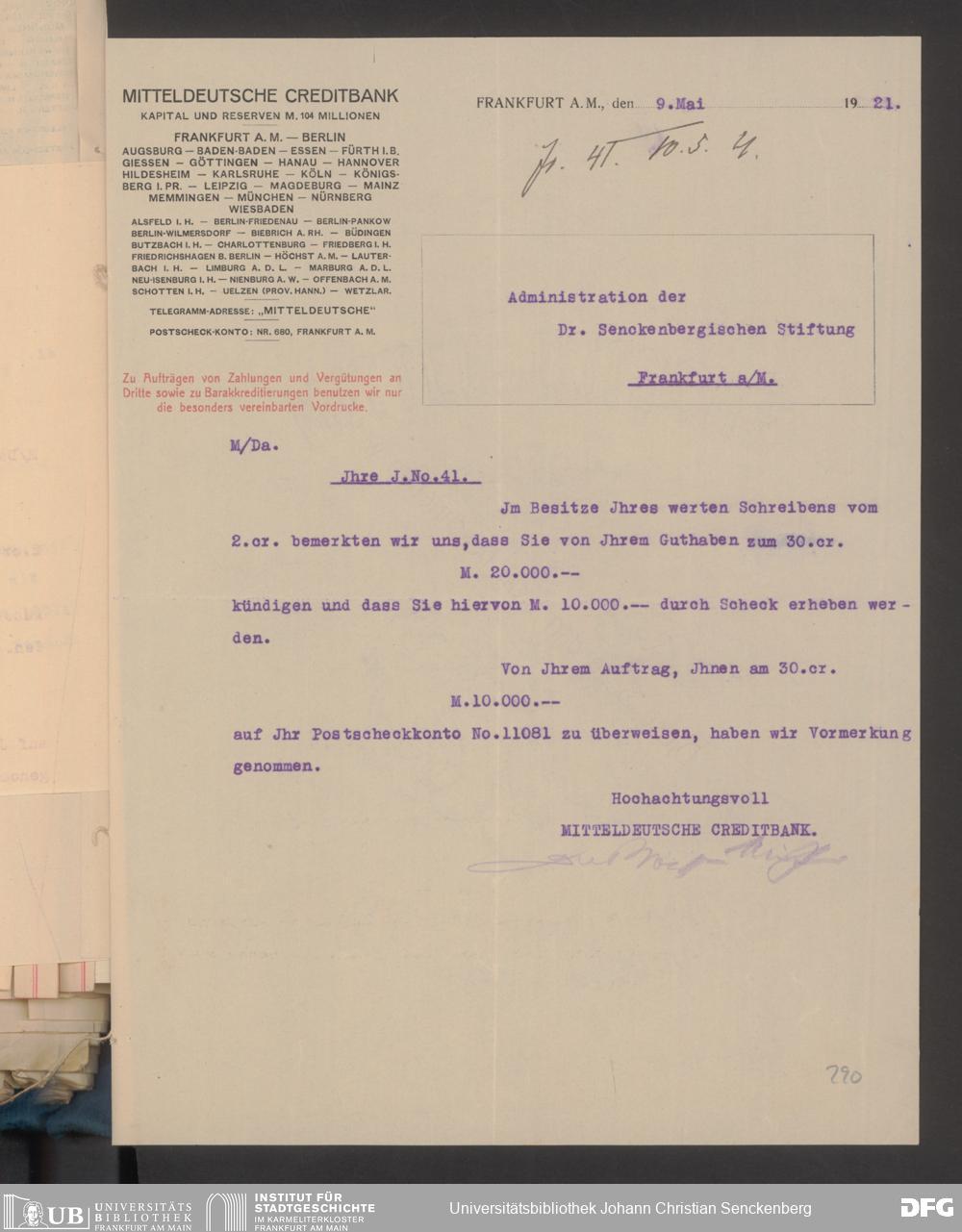 V48 Dr. Senckenbergische Stiftung, 608 - Mitteldeutsche Creditbank
