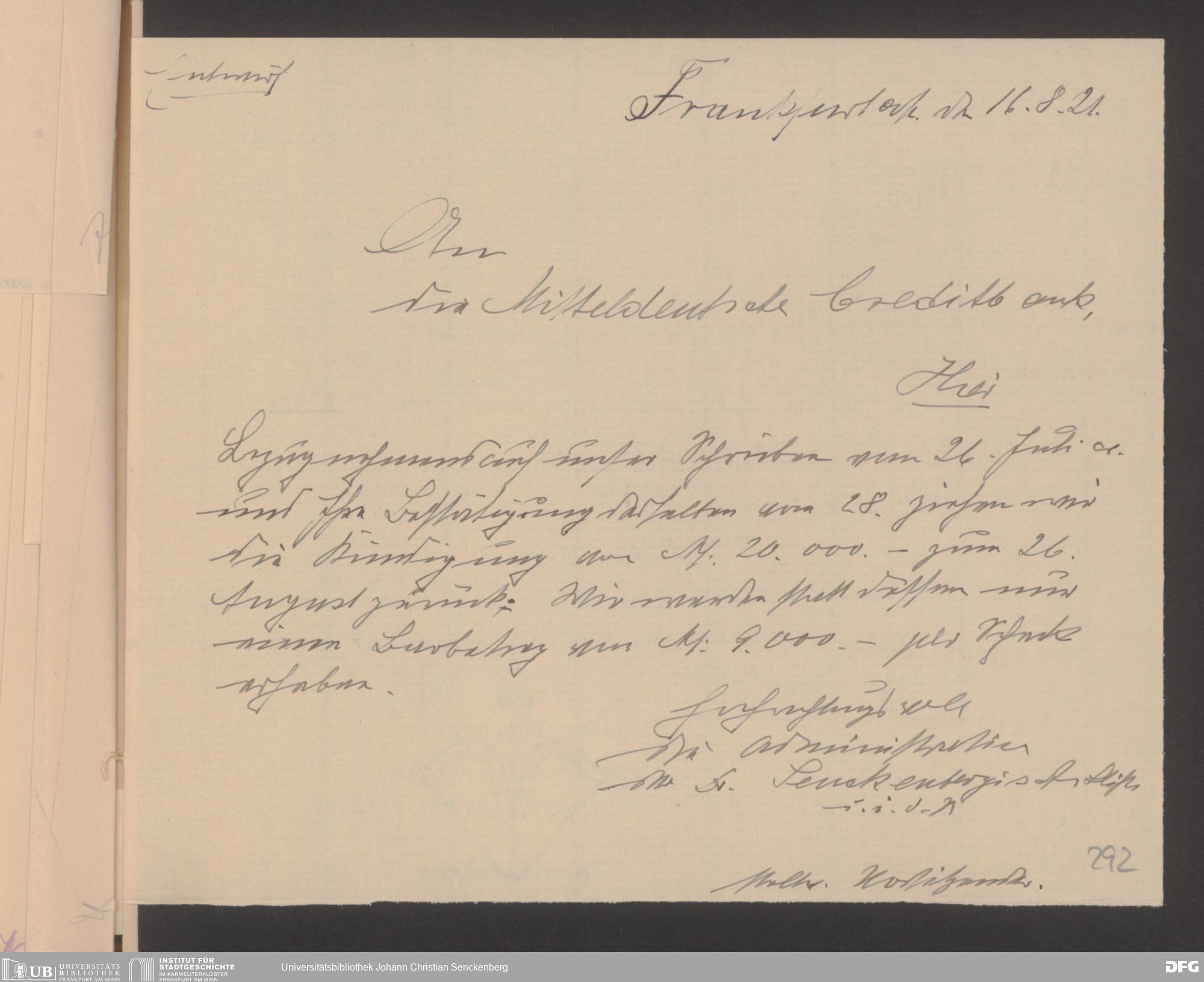 V48 Dr. Senckenbergische Stiftung, 608 - Mitteldeutsche Creditbank
