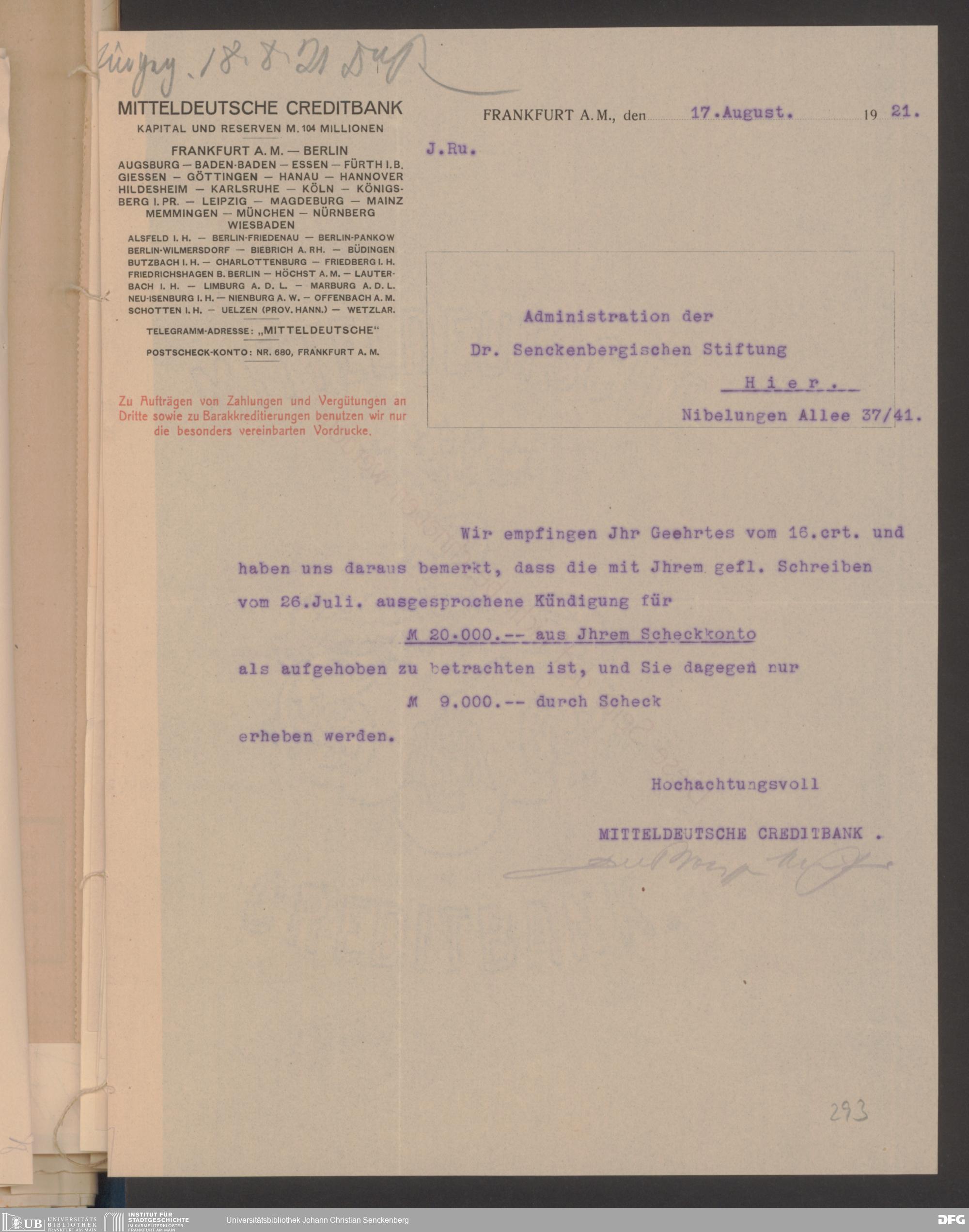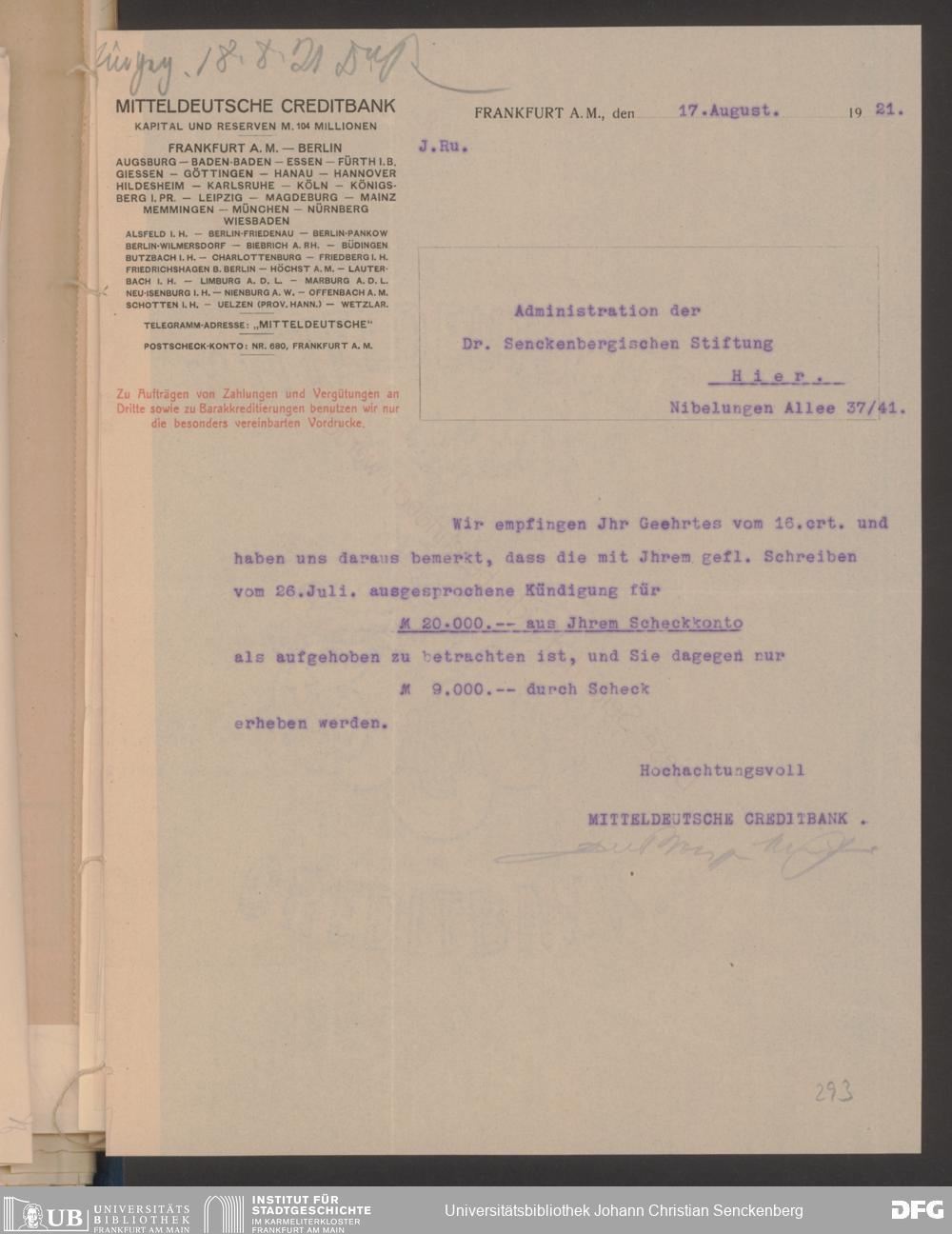 V48 Dr. Senckenbergische Stiftung, 608 - Mitteldeutsche Creditbank