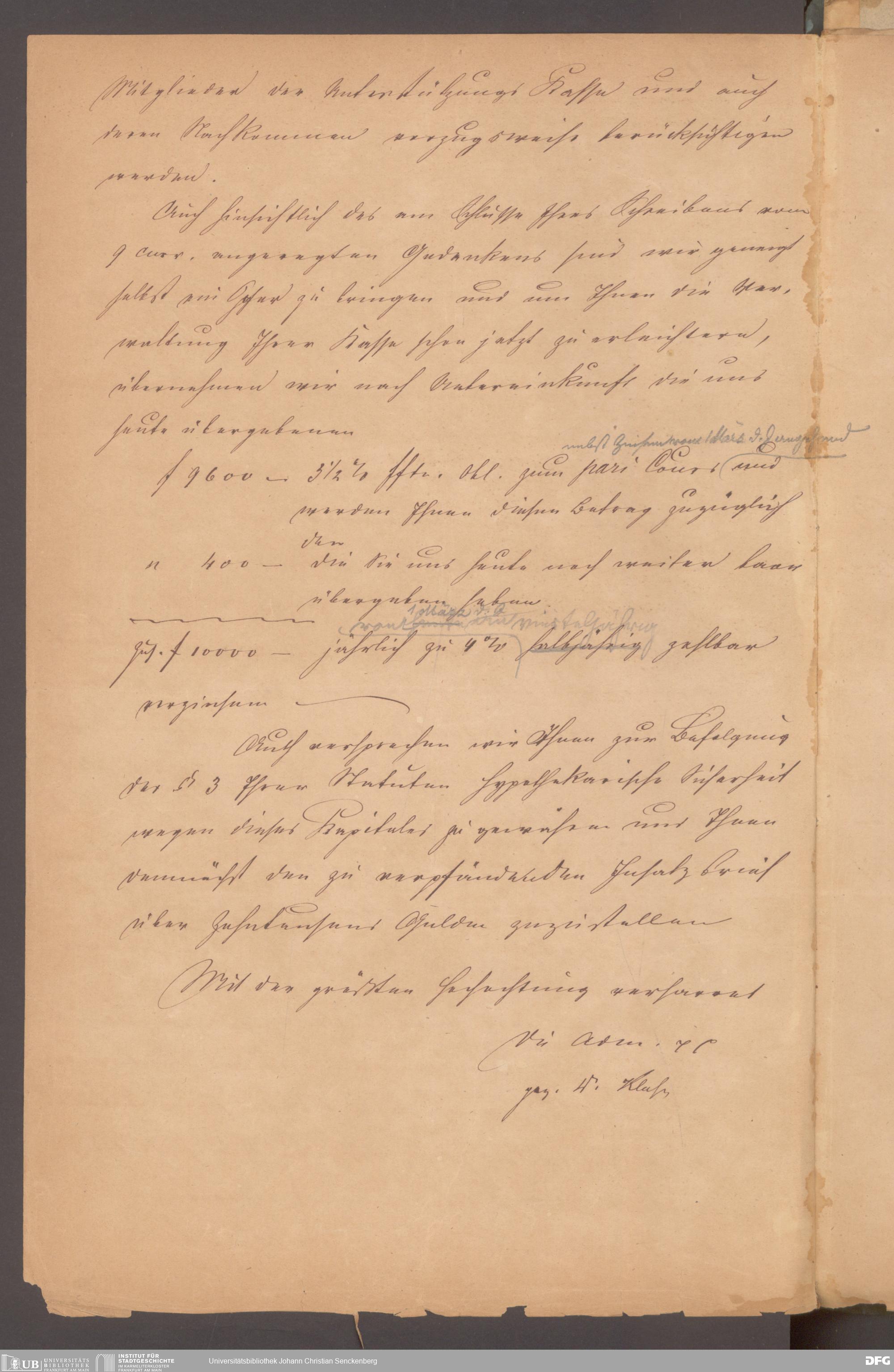 V48 Dr. Senckenbergische Stiftung, 614 - Kapital der Bierbrauer-Genossenschaft