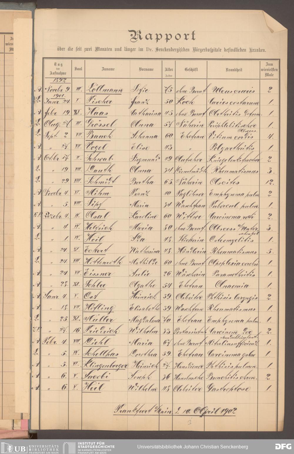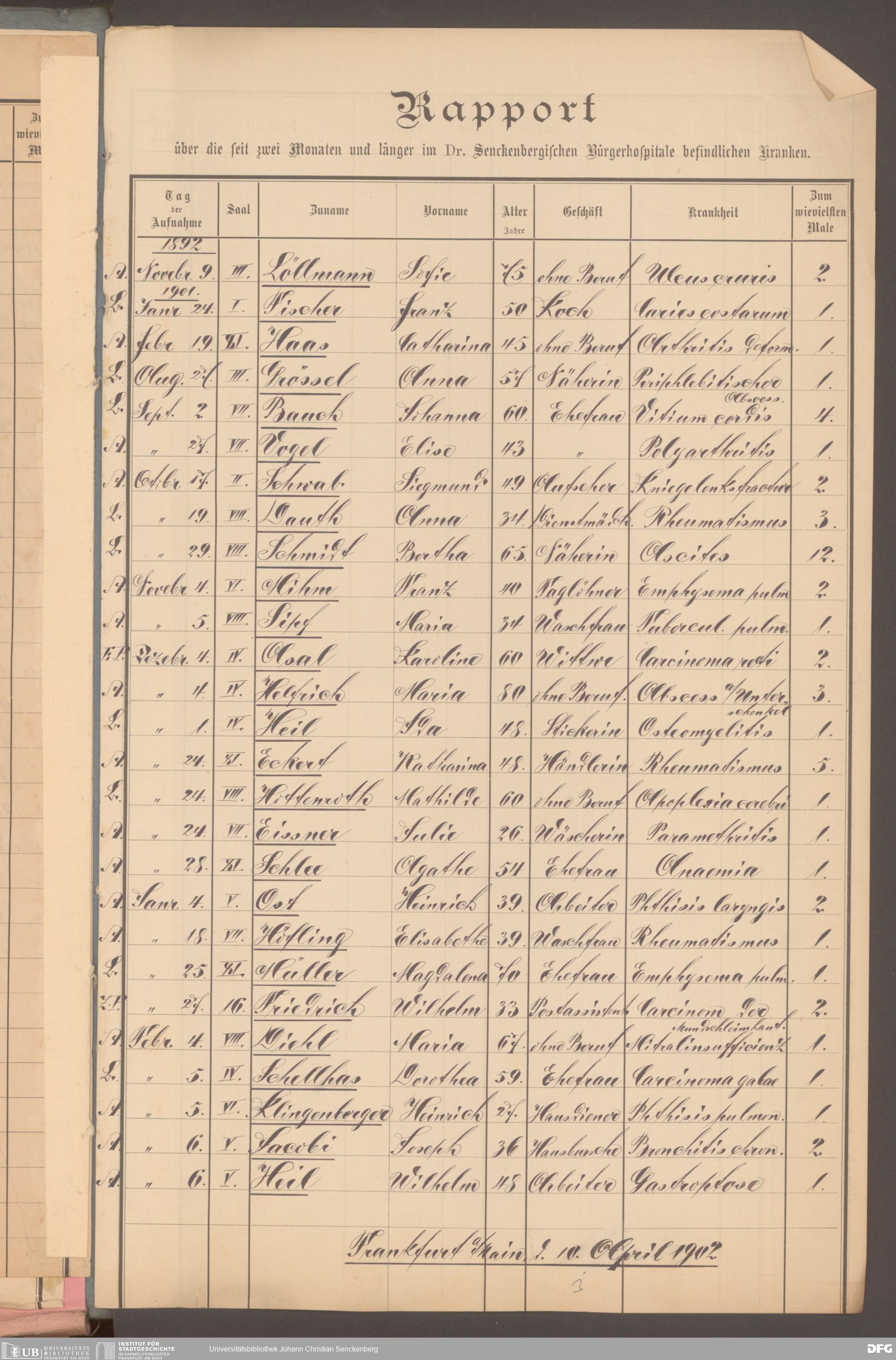 V48 Dr. Senckenbergische Stiftung, 620 - Krankenbericht