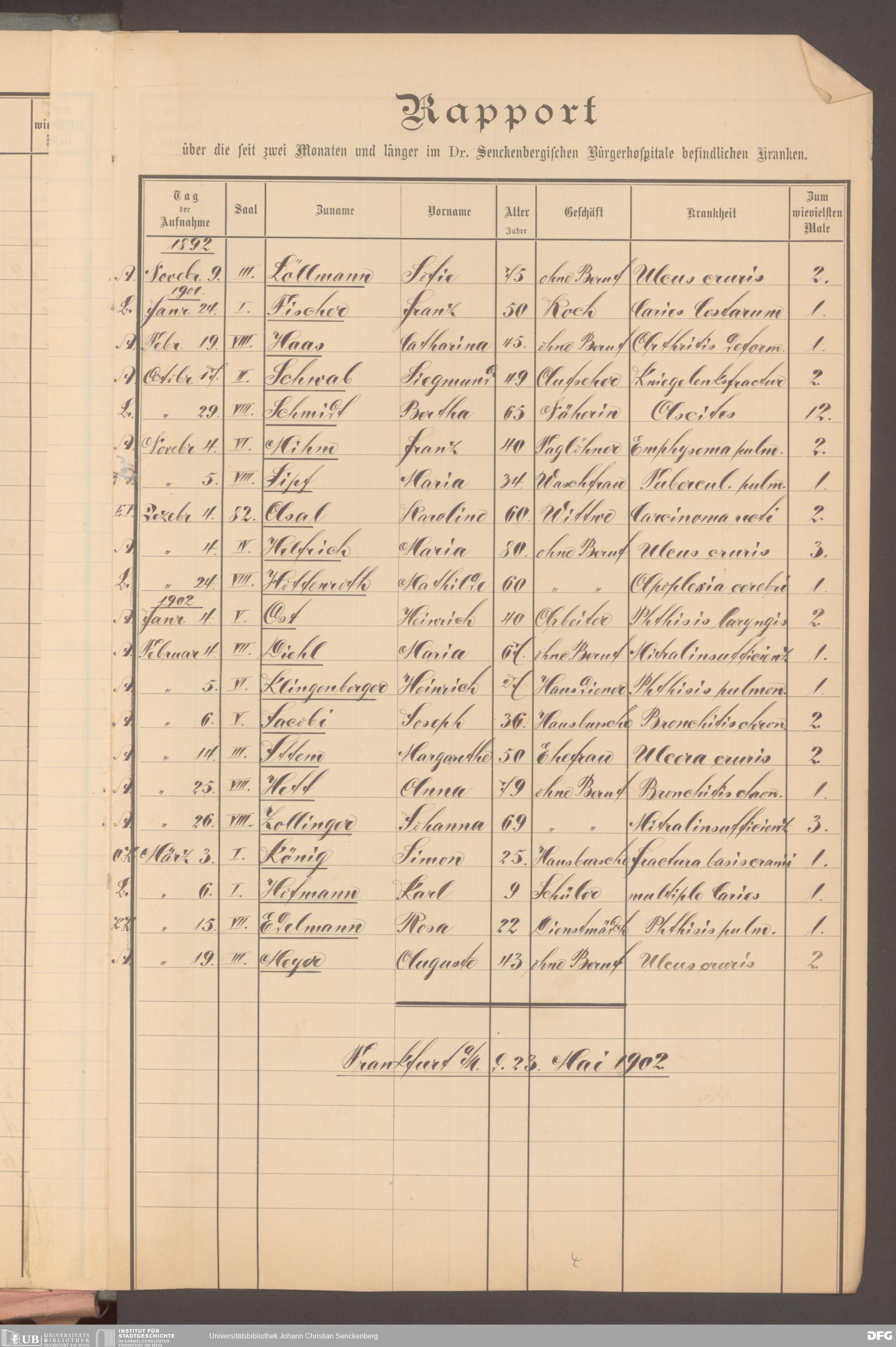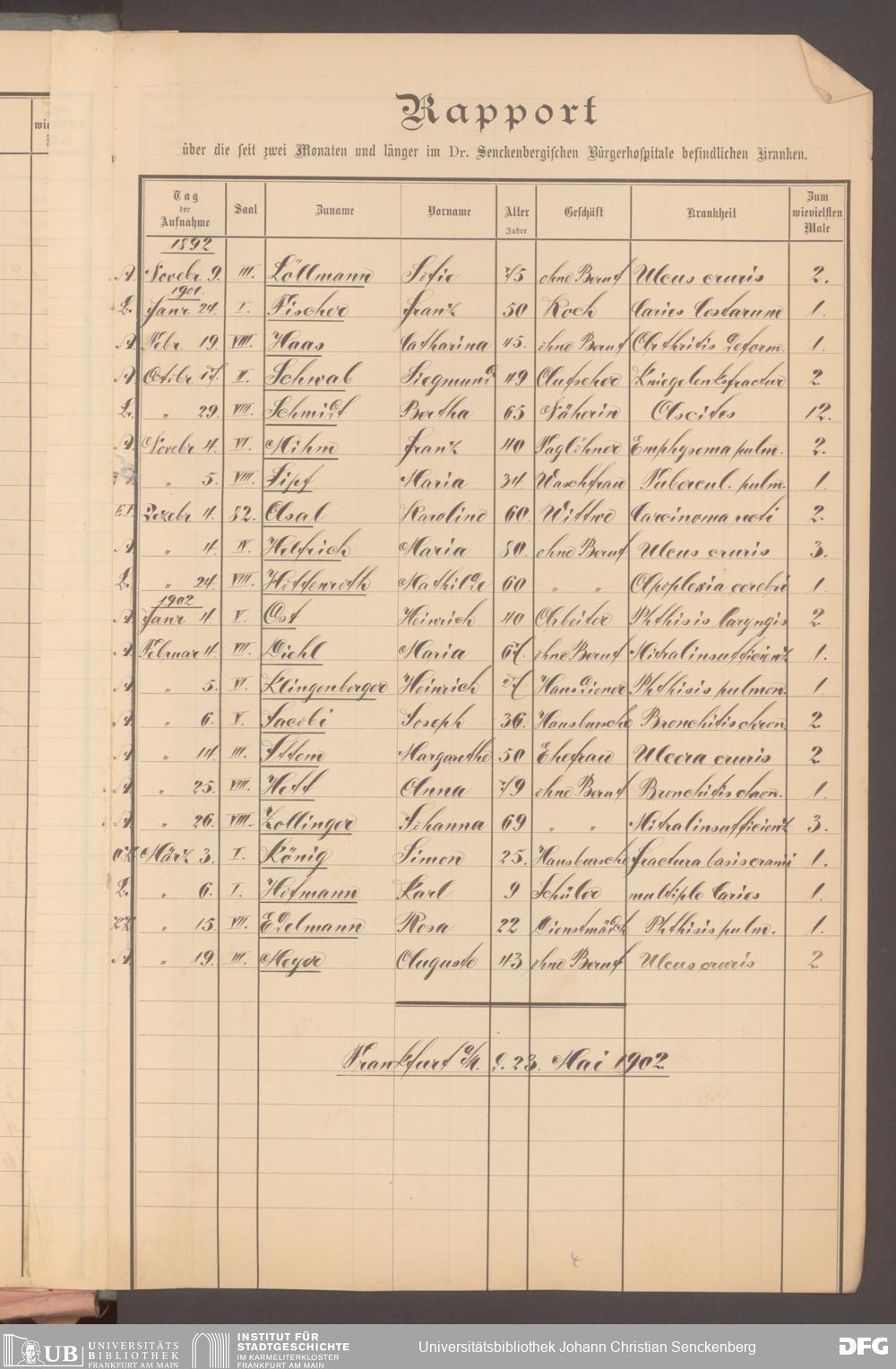 V48 Dr. Senckenbergische Stiftung, 620 - Krankenbericht